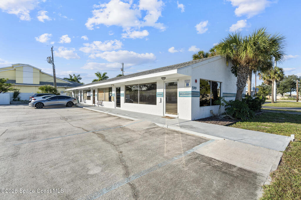 599 Sherwood Avenue is a 5, 951 SF multi-tenant office building on 0.41 acres in Satellite Beach, FL, with 5, 411 SF of gross leasable area. The single-story layout includes 16 suites, each with private entrances, flexible configurations, restrooms, and direct parking. Located just off South Patrick Drive and a block from A1A, it's minutes from Patrick Space Force Base, Cape Canaveral, and the beach. Currently 81.5% occupied (13 of 16 suites), tenants include wellness, beauty, professional services, and boutique retail. Priced at $1.4M (~$235/SF), it offers stable income with lease-up potential.