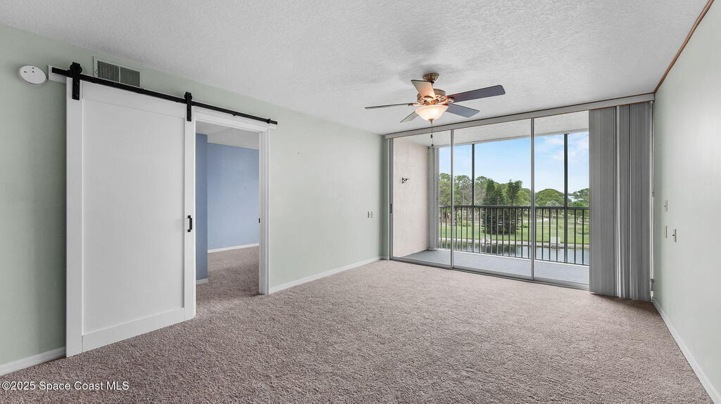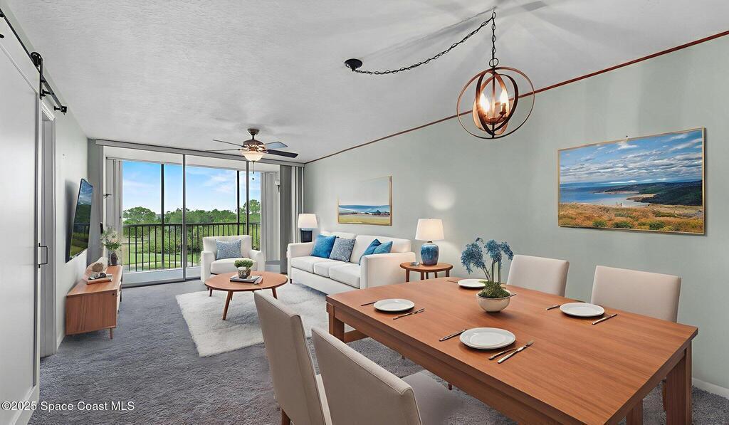 Quiet 4th-floor 2-bedroom, 2-bath condo with detached 1-car garage in the desirable 55+ Carmel Community. Bright unit features hurricane-impact windows and shutters, new flooring, quartz kitchen, stainless steel appliances, laundry hookups inside unit, nearby trash chute, and a screened balcony with peaceful pond views. Enjoy truly low-maintenance living with a most-inclusive HOA covering water, sewer, trash, cable, internet, Disney+, insurance, lawn care, pest control, and exterior maintenance. Community offers a clubhouse, pool, fitness center, library, billiards, and social activities. Milestone inspections complete and elevators updated. Convenient to Viera shopping, dining, medical facilities, trails, beaches, I-95, and less than an hour to Orlando.