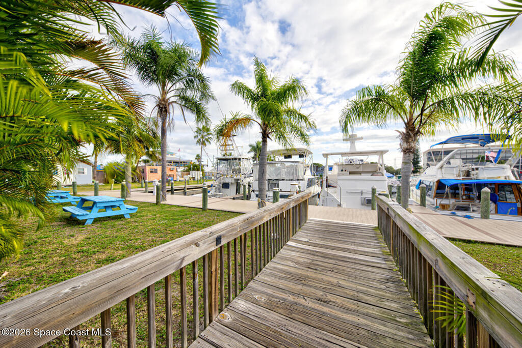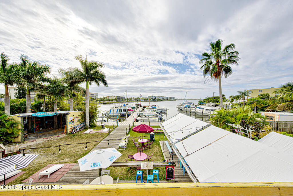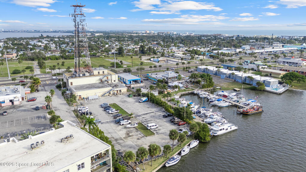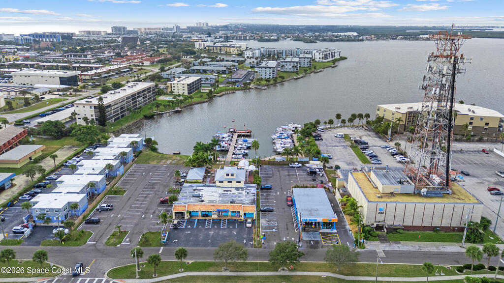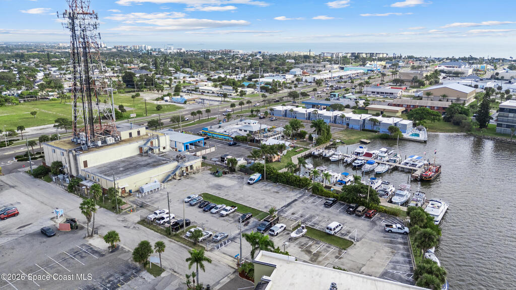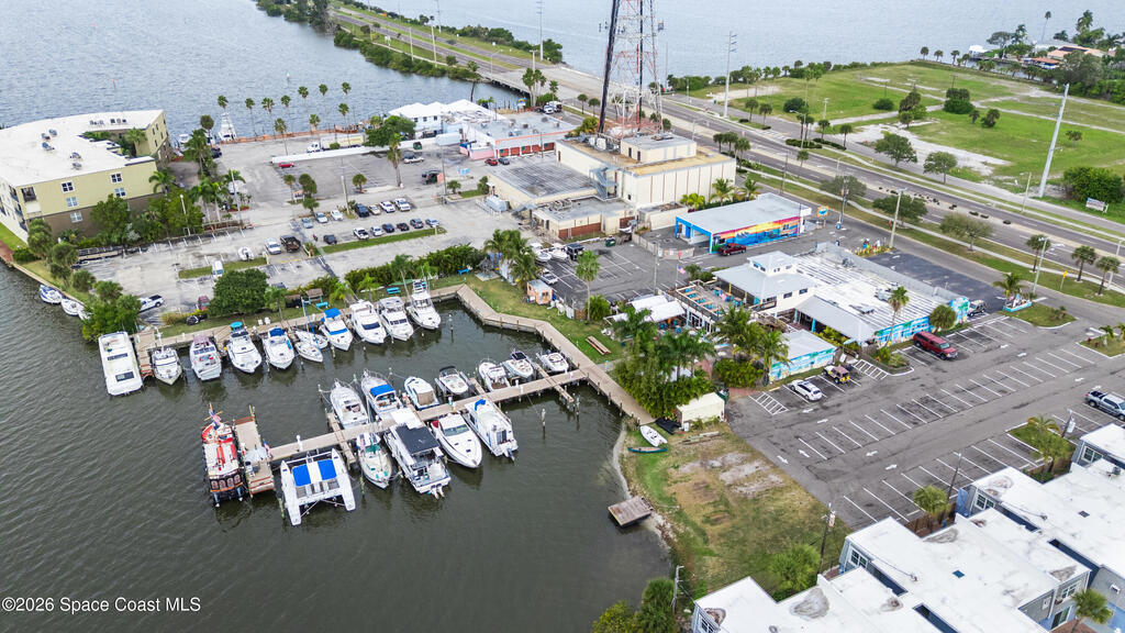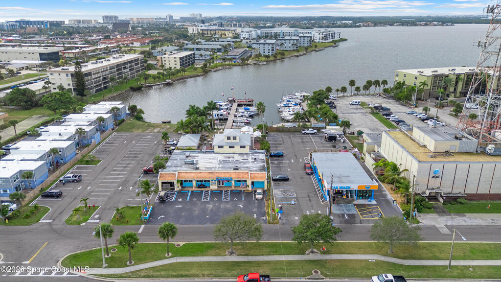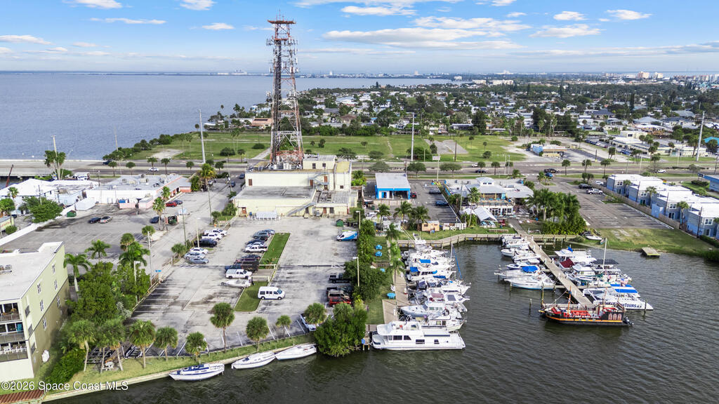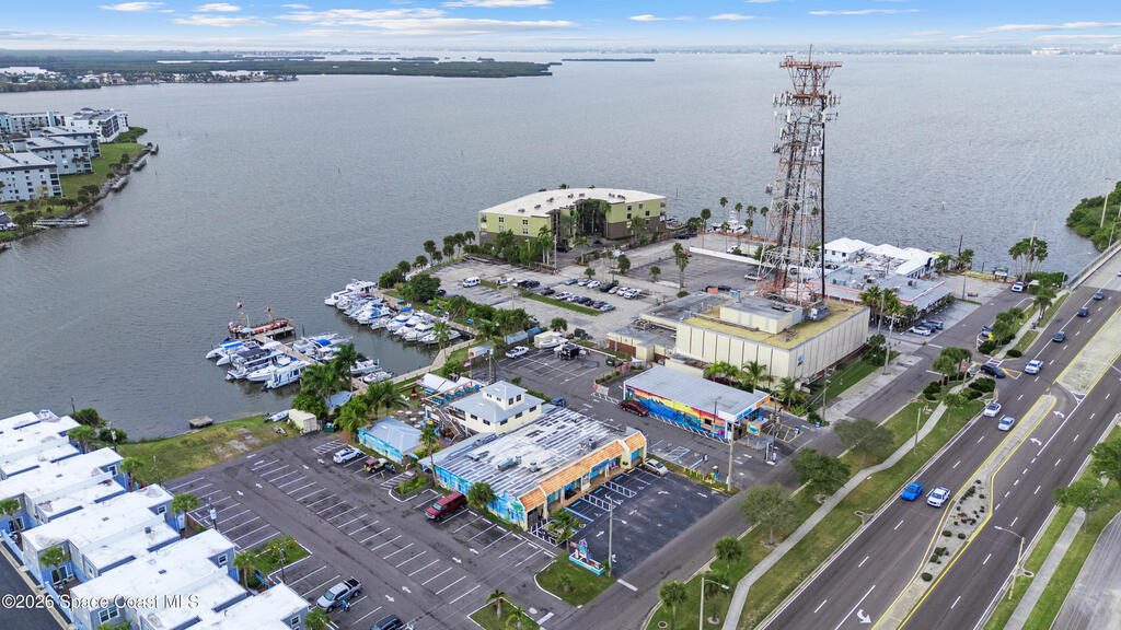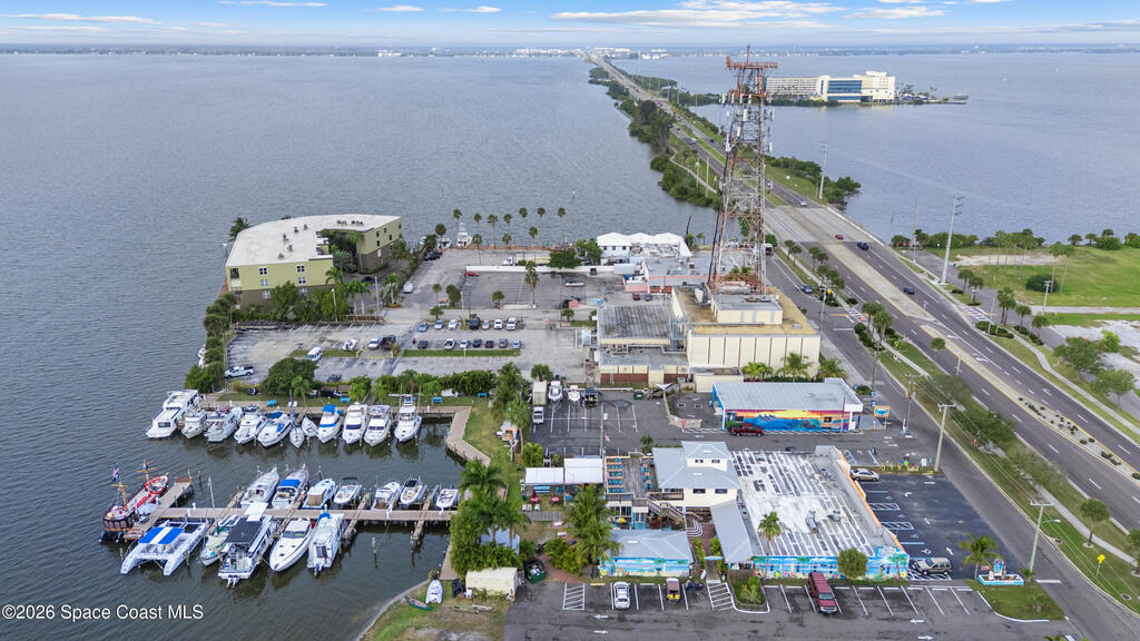 Rare Cocoa Beach riverfront commercial opportunity on SR-520, the main gateway into Cocoa Beach. Listing price includes TWO parcels: Parcel ID 24-37-34-CI-46-11 and Parcel ID 24-37-34-CI-46-12.75, totaling 1.54 acres w/ approx. 500' of Indian River frontage. Property features an existing retail building, operating restaurant, and marina with 30 boat slips (3 w/ lifts), water/electric towers, and pump-out hatches throughout. The 0.49-acre riverfront parcel currently used as parking offers future redevelopment potential (possible multifamily/condo--buyer to verify). Includes liquor license (conveys w/ building) and existing inventory. Multiple income streams: commercial leases, restaurant, marina, and redevelopment upside. City beautification planned for SR-520 entrance + 221-unit mixed-use development planned across the street. Exceptional visibility, waterfront access, and long-term appreciation potential. Zoning is GW (Gateway) in the City of Cocoa Beach; Future Land Use Redevelopment