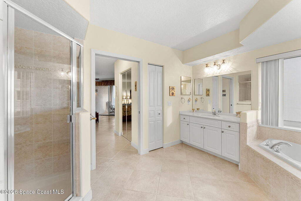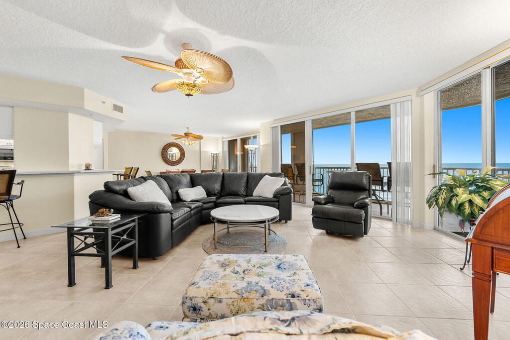 Oceanfront positioning & multiple balconies bring a rare mix of open-water views & light from the south & west, with a layout that feels cared for & quietly pristine. The open living & dining area flows directly to an ocean-facing balcony with accordion shutters, keeping the shoreline front & center, while a separate office adds a dedicated space for work, reading, or overflow guests. The eat-in kitchen is arranged around a storage island & pantry closet, with stainless appliances approximately three years old. The primary suite includes two mirrored closets & a private south-facing balcony, paired with an ensuite bath featuring dual vanities, a makeup station, jetted tub, glass shower with bench, a private toilet area & a linen closet. Two guest bedrooms offer mirrored closets, with one opening to a west-facing balcony, supported by a full guest bath with a tub & shower combination plus a separate powder room nearby. Laundry includes washer, dryer & utility tub.