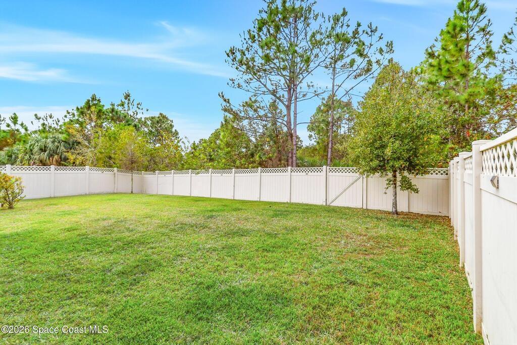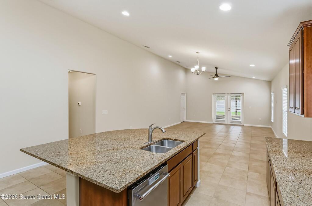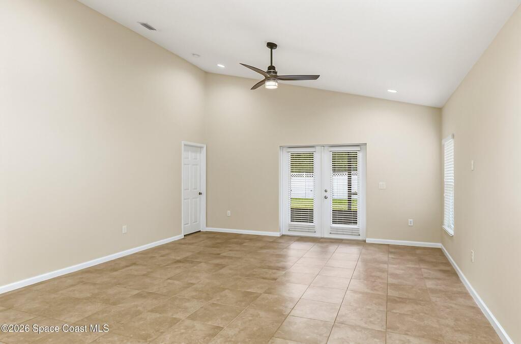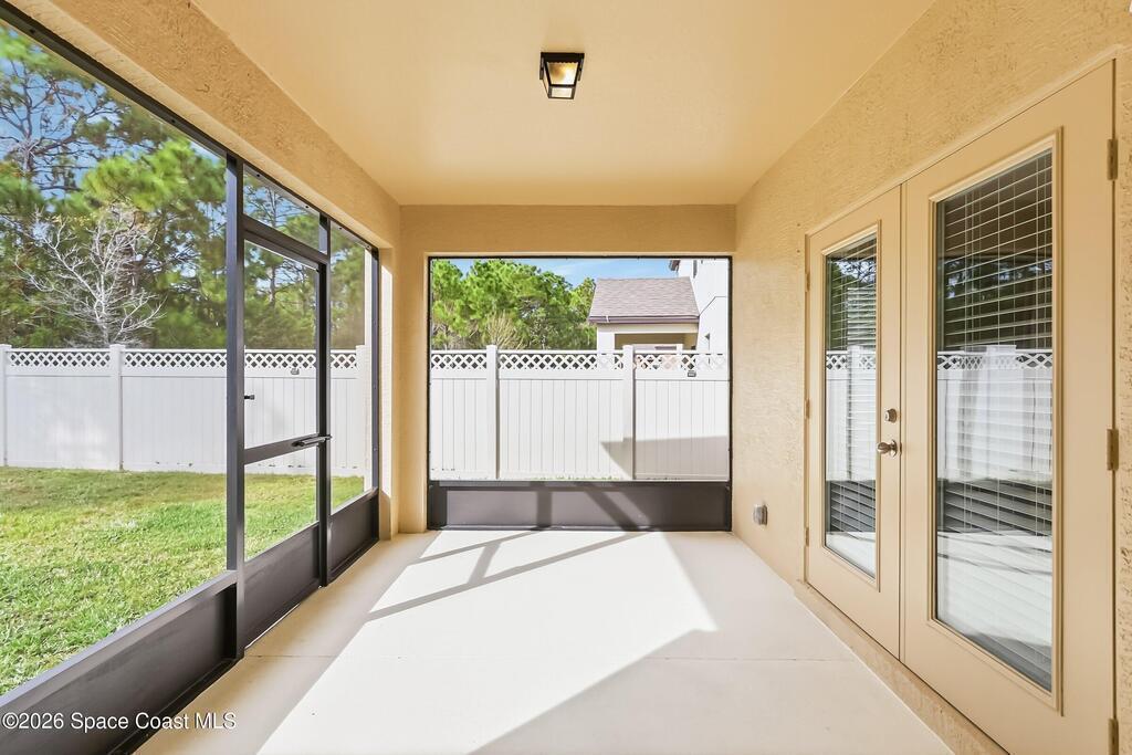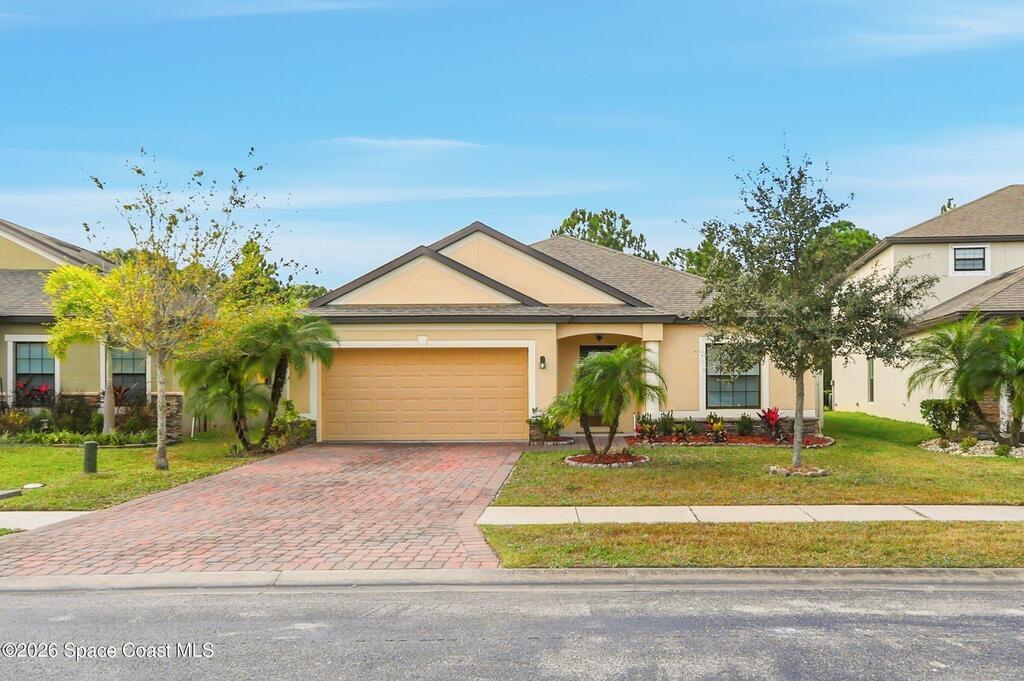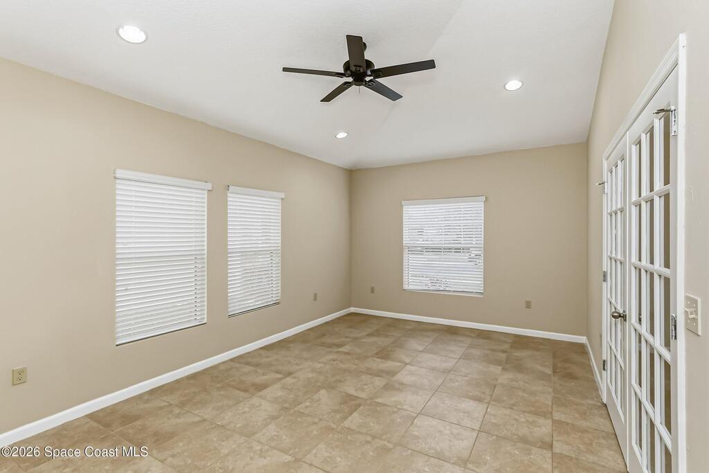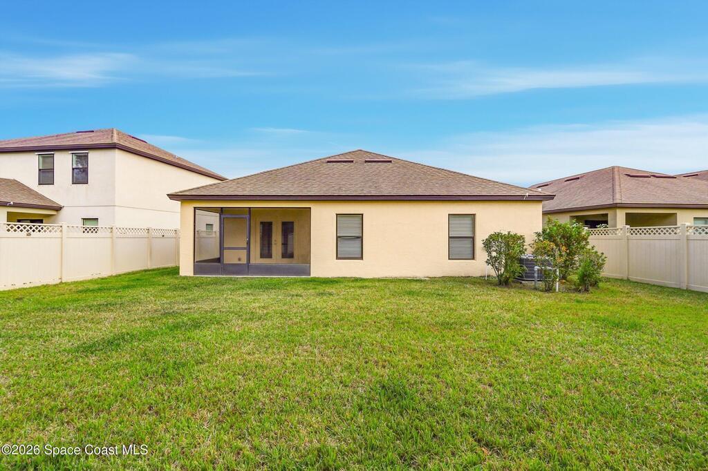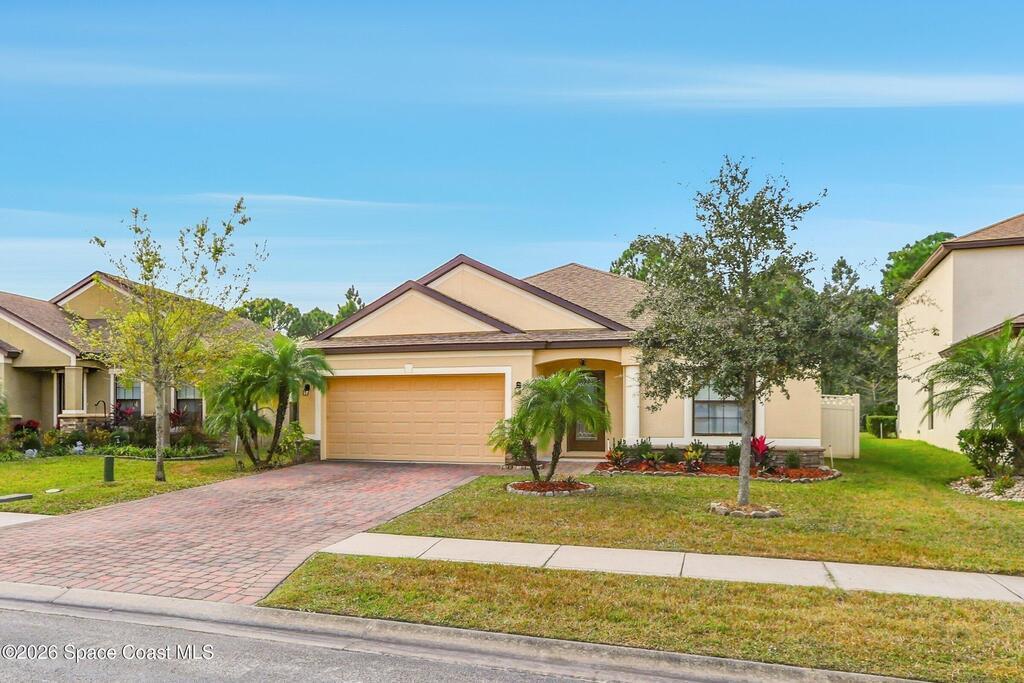Come see everything this Palm Bay home has to offer! A bright and open living space makes it the perfect place to host guests or a comfortable space to relax in. From the moment you walk in, you are greeted with the great room, flooded with natural light, as well as French doors to an office/multi-use space, as well as the back patio. The massive island in the kitchen makes both of these easier than ever, along with upscale appliances that allow you to appreciate your new space. New paint has been applied inside and out, along with fantastic upkeep to make this 2017 home feel brand new. The primary bedroom has one of the most desirable layouts you can find, with dual walk-in closets and a split dual vanity in the bathroom, sure to give you a lavish feel. The Extravagance continues into the secondary bathroom, with another dual vanity. Don't miss the opportunity to make this impeccably maintained, move-in-ready gem your own!