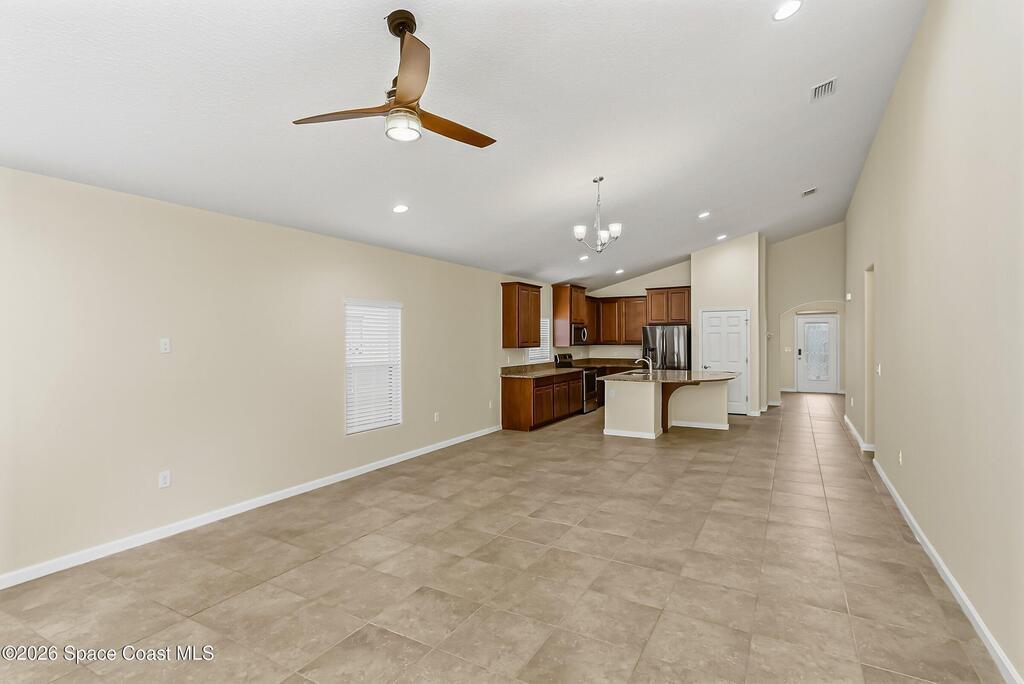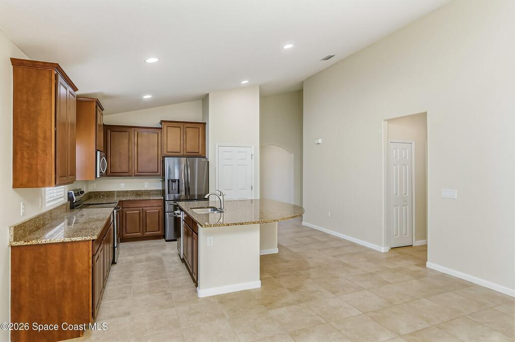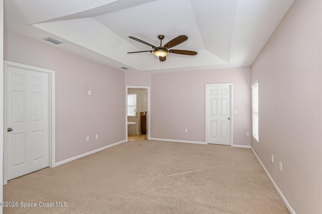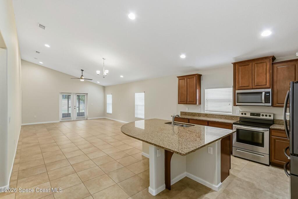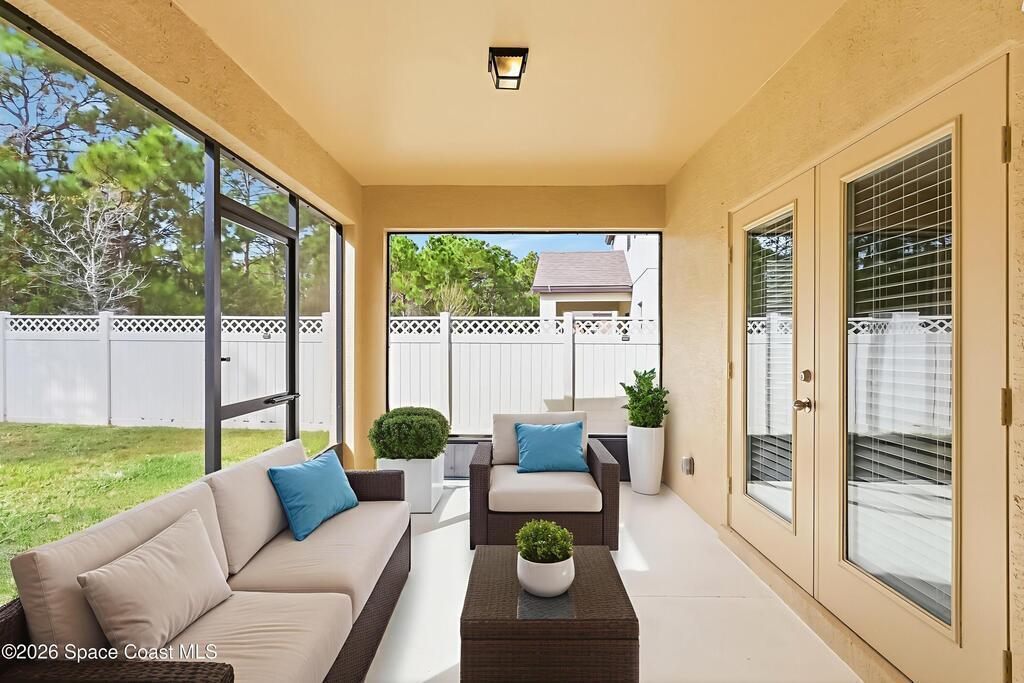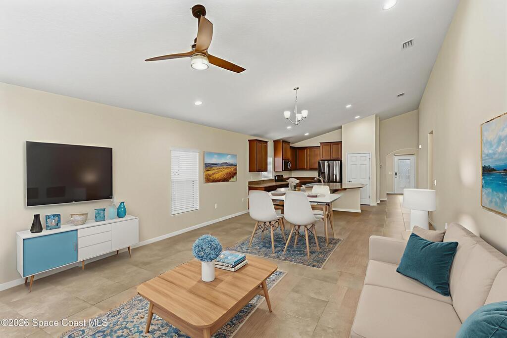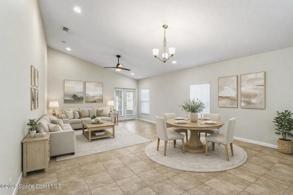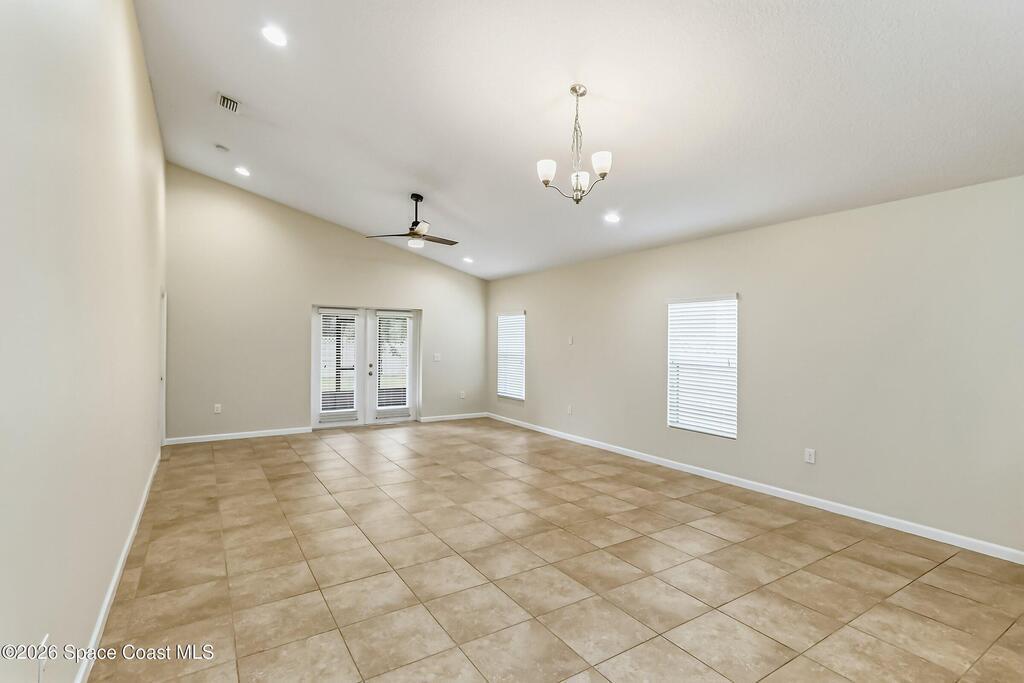 Come see everything this Palm Bay home has to offer! A bright and open living space makes it the perfect place to host guests or a comfortable space to relax in. From the moment you walk in, you are greeted with the great room, flooded with natural light, as well as French doors to an office/multi-use space, as well as the back patio. The massive island in the kitchen makes both of these easier than ever, along with upscale appliances that allow you to appreciate your new space. New paint has been applied inside and out, along with fantastic upkeep to make this 2017 home feel brand new. The primary bedroom has one of the most desirable layouts you can find, with dual walk-in closets and a split dual vanity in the bathroom, sure to give you a lavish feel. The Extravagance continues into the secondary bathroom, with another dual vanity. Don't miss the opportunity to make this impeccably maintained, move-in-ready gem your own!