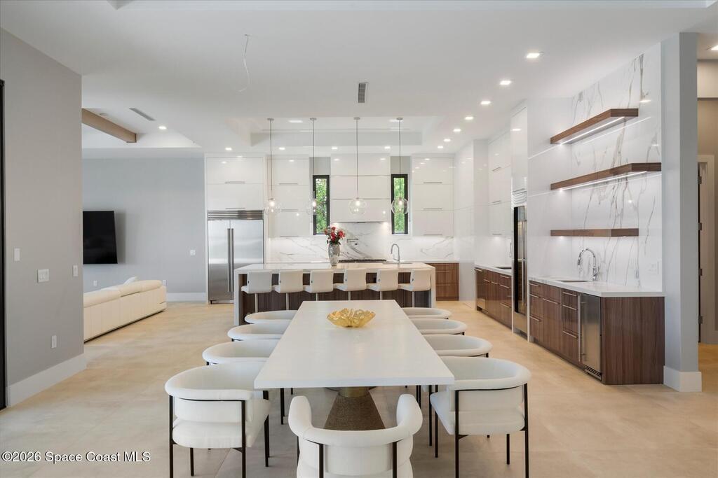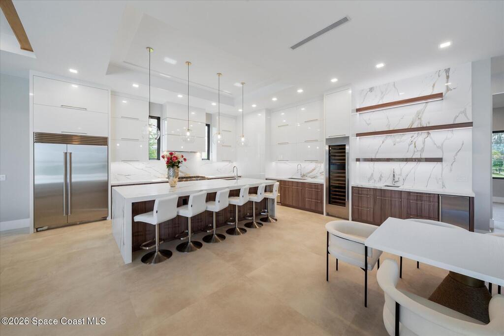 NEW CONSTRUCTION-Custom Built Masterpiece on Direct Deep Water with 2018 Seawall, Dock & Boat Lift. Step into Luxury along The Breathtaking Indian River, home features 4 bedrooms, 41/2 baths with Study/Den. Impact Windows & Doors, Metal Roof, 4 Car-Garage, Infinity Edge Salt Water Pool with Spa and much much more. Modern Elegance with Coastal Charm.