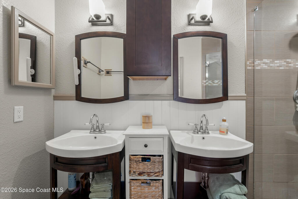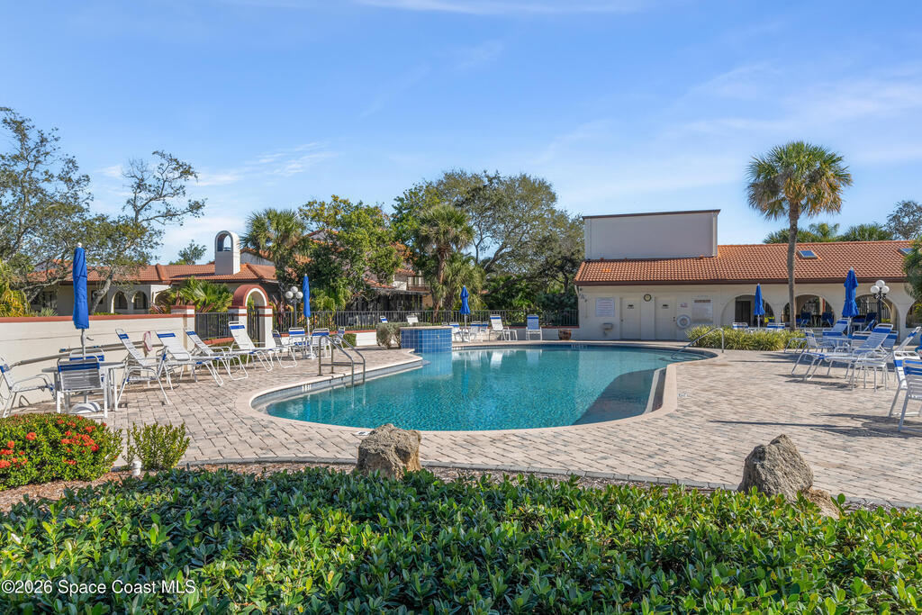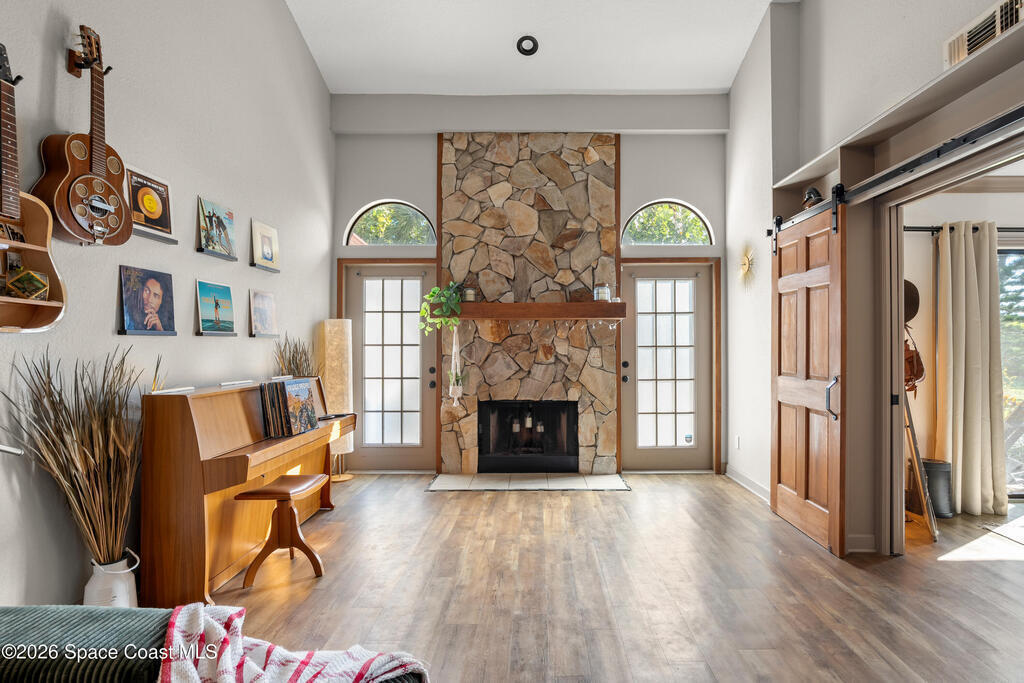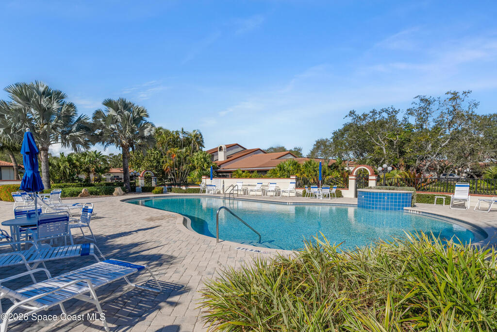 Welcome to this beautifully maintained 3 bedroom, 2.5 bathroom townhome located in the highly sought-after Parkside Place community in Indian Harbour Beach, Florida. This light and bright residence offers a first-floor primary suite, 2-car garage, and thoughtful updates throughout, making it an ideal primary residence or low-maintenance beachside retreat. The main living area features vaulted ceilings, a striking stone fireplace, and an open-concept layout perfect for everyday living and entertaining. The first-floor primary bedroom includes his and hers closets, a dual vanity, and a walk-in shower. Upstairs, you'll find two additional bedrooms and a full bathroom, offering flexibility for guests, family, or a home office. Recent updates include a brand-new HVAC system and a 2020 tile roof, providing peace of mind and long-term value. Step outside to a pavered back patio, ideal for relaxing or enjoying Florida's coastal lifestyle.