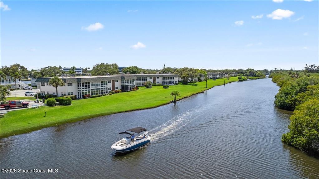 Enjoy water views from every room from this sought-after first floor 2/2 corner unit in desirable 55+ community! Updated kitchen and baths, tile floors throughout, impact windows. Community features pool, clubhouse, shuffleboard, dock for fishing/relaxing. Restuarants and specialty shops just around the corner on Royal Palm Pointe. Only minutes from the bridge and all the island has to offer...restaurants, museum, theater and beaches!