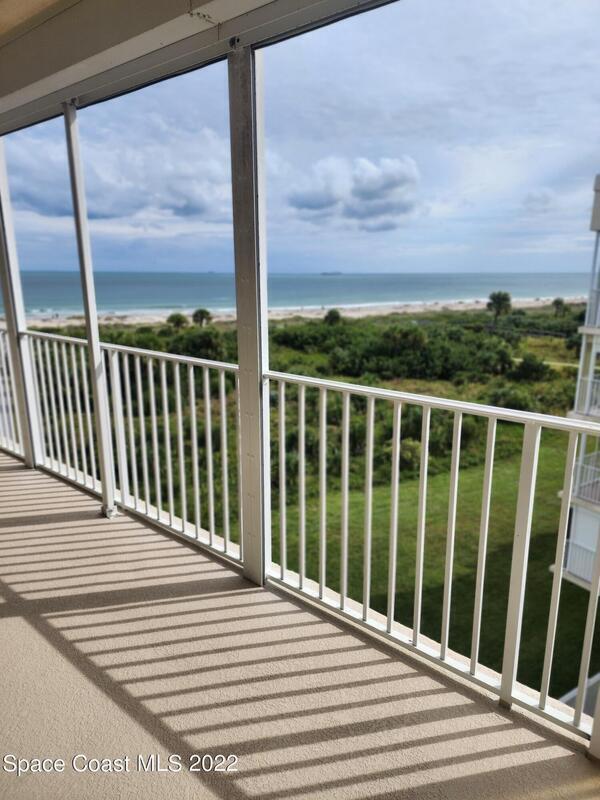 DIRECT OCEAN FRONT, TOP FLOOR CORNER UNIT!! ABSOLUTELY BEAUTIFUL!! This 3/3 unit speaks for itself! New SS appliances to be delivered soon. Amenities include: private two-car garage, private beach access, pool, club house, tennis court, hot tub, sauna and a spa! Watch rocket launches, cruise ships, private yachts, boats, even submarines come and go from Port Canaveral.
