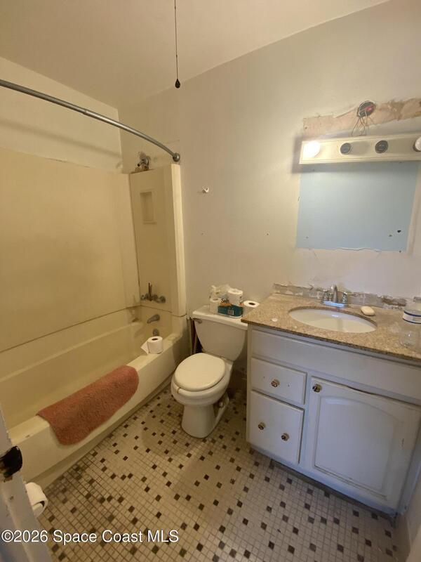 This 2nd floor unit is a handyman's delight. Tear out has been done. Drywall has been replaced, needs painting. All carpet has been pulled up. Tile has been purchased for bathroom floors and vinyl planks have been purchased for kitchen and dining room. Hard work has been done, now with your vision, you can make this total rehab beautiful. Windows have been upgraded to hurricane impact. Convenient location, close to a lot of shopping. Public golf course across st, block away from Wickham Park, many amenities on Wickham St