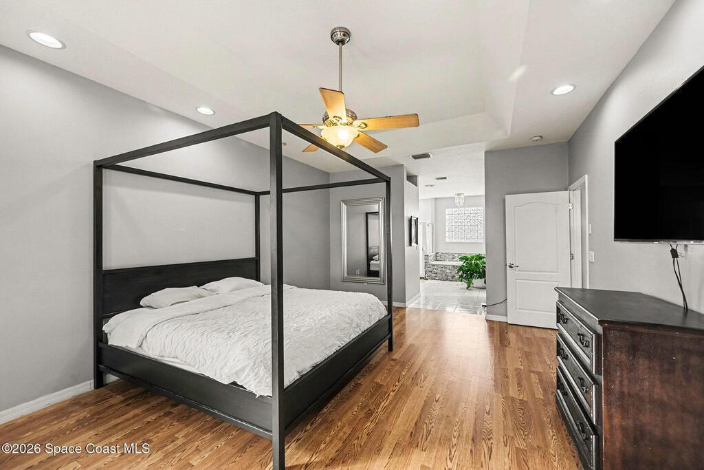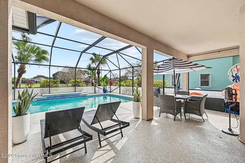 Welcome to THE SAVANNAHS where Space Coast living meets everyday adventure! Enjoy spectacular rocket launches from your own backyard oasis at this 4 BED 2 BTH residence in the heart of North MERRITT ISLAND. The spacious kitchen opens to the family room with serene views of the SPACE COAST GOLF CLUB while separate living & dining areas provide ideal spaces for entertaining. The first-floor primary suite offers direct access to the covered patio & SALTWATER POOL creating a true indoor-outdoor retreat. High ceilings and a thoughtfully designed floor plan support today's active lifestyle, including an upstairs bedroom & bath--perfect for guests or a home office. Outdoor living shines with a tranquil screened enclosure and ample space for family gatherings. Additional highlights include an oversized 2 CAR garage & circular driveway for extra parking. Community amenities feature tennis courts and a playground, all with excellent proximity to Blue Origin, NASA, Port Canaveral & Orlando!