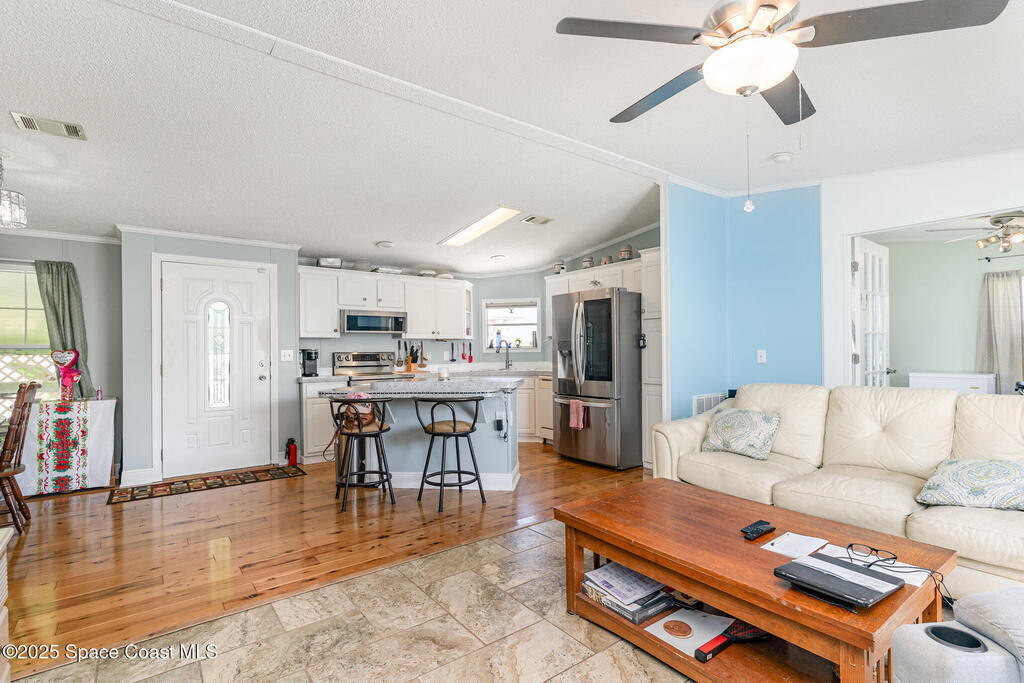 Clean inspection in hand and priced to sell! Welcome to your slice of paradise in Barefoot Bay! This charming 2/2 is in a prime location. From your front yard you have a beautiful unobstructed view of the golf course. The backyard is the real WOW factor with 2 Royal Poinciana trees overlooking the canal that provides extra privacy and is full of Florida wildlife such as birds, turtles and fish. You even have a direct view of the baseball field from here. Inside the home you will enjoy an open floor plan with a large island overlooking the living room and breakfast nook. In the very front of the home through French doors is a bonus room that is perfect for extra living space or an office. The two bedrooms are in the back of the home both have spacious closets with the primary having it's own on suite. The ''get it done'' person in your family will appreciate the large workshop with separate AC to keep you cool while you work. Motivated sellers!