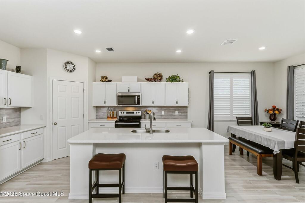 4+BR/3BA move-in ready home in NW Palm Bay delivers the space, flow & comfort today's buyers are looking for. Step into a bright main living space designed for connection, where the kitchen anchors the room w/island seating & eating nook, and adjoining dining & living areas keep everyone together -- perfect for casual mornings, family dinners or hosting friends. Tucked privately off the main space, the owner's suite feels like a true retreat, offering a spacious walk-in closet and spa-style bath w/dual sinks & step-in shower. Flexible bonus space adapts easily as an office, guest room or playroom, while 3 additional bedrooms, well-placed baths & a large laundry room support everyday life with ease. Outside, a screened back porch, expansive decking & fully fenced yard create a peaceful setting w/no rear residential neighbors. Just mins from shopping, dining & I-95, this home shows like new and is ready for its next chapter. Schedule your showing today.