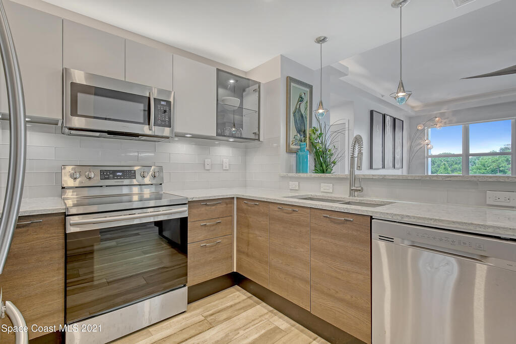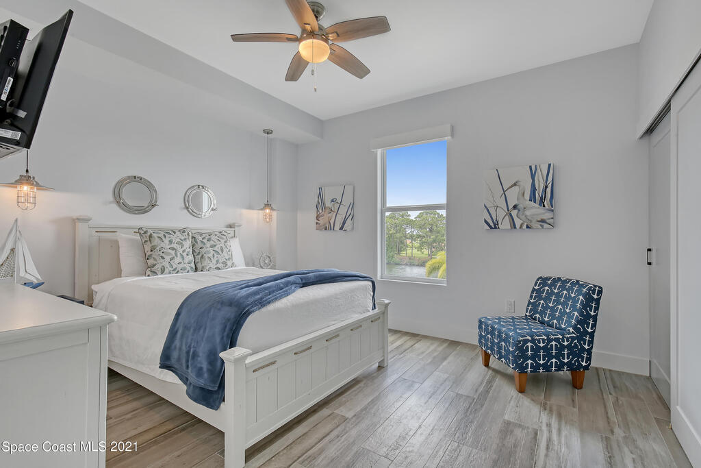 Two units! You can rent out one and live in the other. The pictures speak for themselves on this one, but let me tell you more! Your very own piece of waterfront paradise awaits for you on the Space Coast at Cape Crossing Resort. This stunning 4 bedroom 3 bath condo is full furnished and boasts luxurious finishes making it perfect for residing in full-time, part-time or for an income producing vacation rental. Sit peacefully on your oversized private balcony with views of wildlife, the marina and rocket launches. This unit FEATURES the 4th bedroom in a private suite (lockout) with private balcony, kitchenette and entrance, perfect for guest or additional income. Cape Crossing has amenities galore! The generously sized pool is heated year round, with a large deck, plenty of seating, stocked gym and sauna.