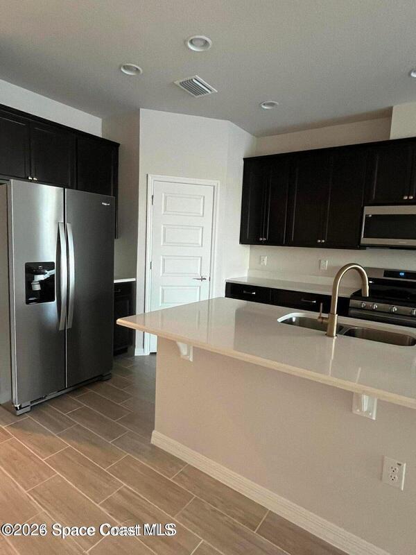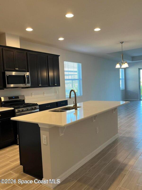 Beautiful waterfront home ready for you to move-in! This stunning residence offers top-of-the-line upgrades, including quartz countertops, wood-look tile flooring, stainless steel appliances, and recessed lighting throughout. The open floor plan is complemented by hurricane-impact windows and a modern kitchen featuring a spacious walk-in pantry. This like-new (one year) 4-bedroom, 2.5-bath home is ideally located in the heart of Viera, close to premier shopping and dining, and just minutes from I-95.