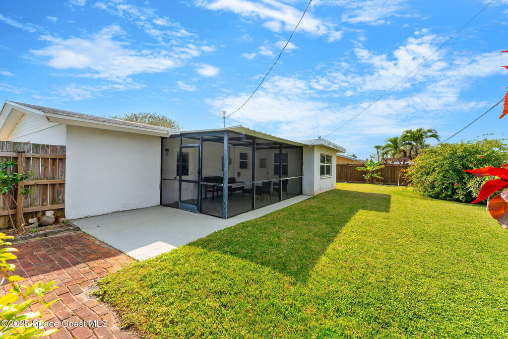 Coastal living at its best! This fully renovated 3-bed, 2-bath home in Cape Canaveral is just steps from the beach and offers 1, 492 sq. ft. of modern comfort. The open floor plan features luxury vinyl plank flooring, a granite kitchen with stainless appliances, and fresh interior paint. Major updates include impact windows (2018), roof (2018), new HVAC (2023), new electrical panel (2023), and upgraded attic insulation with solar fan (2024). A 2-car garage adds convenience, while the community's 7-day rental policy makes this an ideal vacation home or income property. Tucked in a peaceful neighborhood known for its coastal charm and free-roaming peacocks, this home blends style, function, and location--perfect for beachside living or investing.