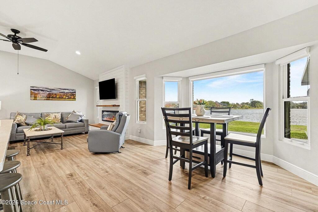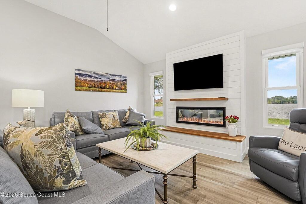 Welcome Home! to this beautifully renovated 4-bedroom, 2-bath lakefront retreat on a half-acre lot in a quiet, hidden-gem neighborhood of large lots & great neighbors. East-facing lake views deliver stunning sunrises, enjoyed from the big picture window & screened rear porch, & screened front porch for amazing sunsets! The open floorplan features a cozy fireplace & durable LVP flooring throughout. Completely renovated top-to-bottom in 2025 with high-quality materials - not a flip - the seller's unexpected change of plans is your gain. Brick-over-block construction, impact glass windows, & a steel roof (50-year lifespan) offer lasting peace of mind. The whole house water filter even keeps you healthy! Enjoy your own private orchard with grapefruit, orange, lemon, lime, and avocado trees. Check out the popup outlets on the kitchen counters! Some furniture is negotiable. Low HOA at just $29/month completes this exceptional opportunity. You've been invited, so what are you waiting for?