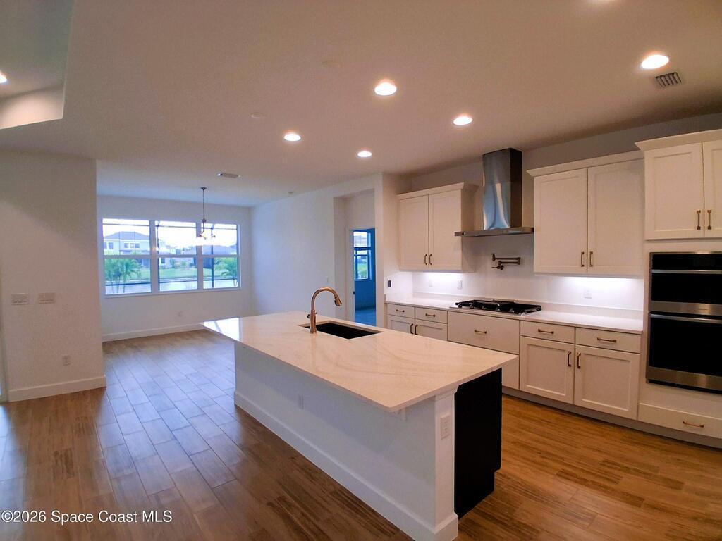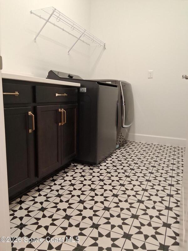 Pangea Park 5 bed 4 bath, Lakefront, Private Pool Beauty!! Cable, internet, & lawn, pest control included in the rent! Plank tile in the main areas & carpet in the bedrooms. The gourmet kitchen features stainless appliances, a walk-in pantry, quartz countertops, soft-close cabinets with under-cabinet lighting, champagne-gold hardware, and an island. A gas cooktop with pot filler and stainless vent hood. Elegant tray ceilings, recessed lighting, The primary suite has tranquil pool and lake views, a spa-style bath featuring an oversized frameless glass shower with bench. Four beds & three baths on the main level. Upstairs, a bonus room with bath use as a fifth bedroom, media or game room, gym, or home office! Screen-enclosed saltwater pool with waterfall feature, covered lanai, and lake views. Garage has an electric car charger. Amenities including a park and pavilion, playground, pickleball courts, community pool, and golf cart paths. Minutes from the beaches, Port Canaveral, Airport