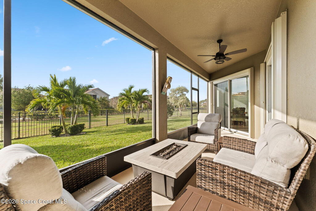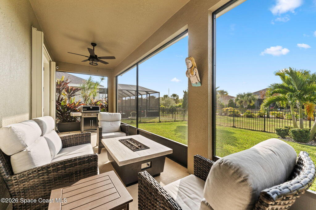 72-Hour Kick Out Clause. NEW ROOF 2026 Welcome to a gated showstopper where style, space, and smart design collide. This 3 bedroom + 1 flex, 3-bath stunner serves up an airy open floor plan made for entertaining, everyday living, and everything in between. The kitchen brings the WOW - new countertops, breakfast bar, eat-in space, and a built-in wine cooler ready for your best pours. Split bedrooms keep things private, while the primary retreat flexes with his-and-hers closets and true owner-suite energy.Plantation shutters, walk-in closets, tankless water heater, whole-home generator, security system, smart doorbell, and manual storm shutters deliver comfort, efficiency, and peace of mind. A 3-car garage means room for all the toys, and the aluminum-fenced yard is perfect for pets, play, or sunset unwinding. Surrounded by resort-style community amenities, zoned for A-rated schools, and minutes from top golf courses, shopping, and dining-this isn't just a home, it's a lifestyle upgrade