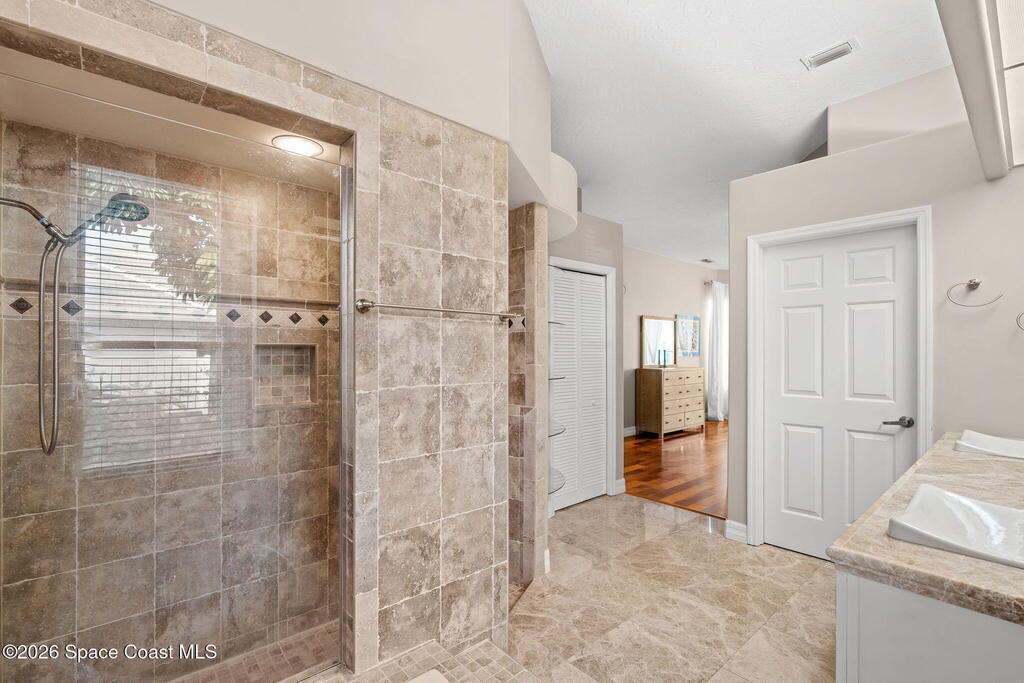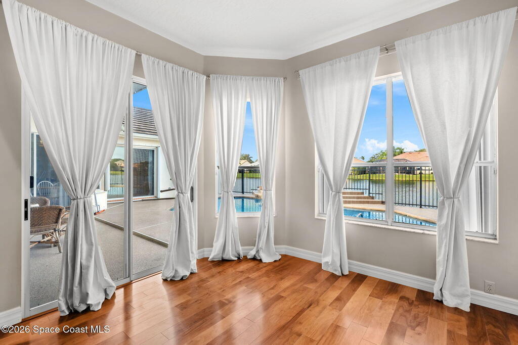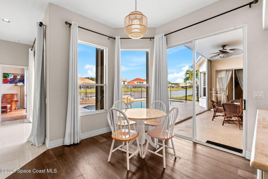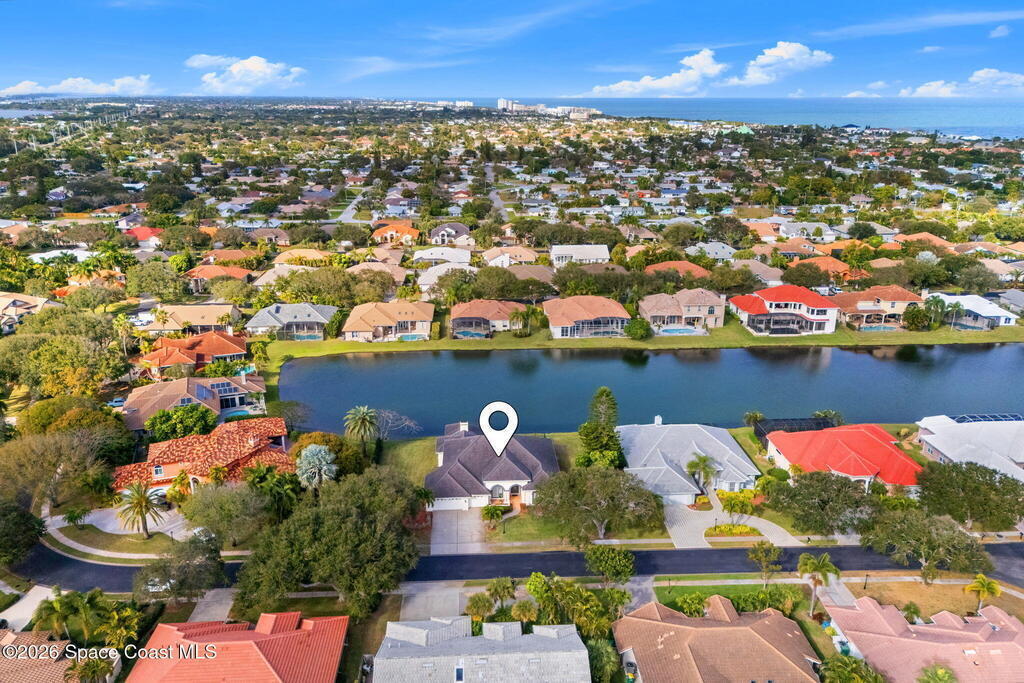 Rare Find: One Of the Largest Lots in the Community, Lakefront, Pool Home!Set on a nearly half acre lot in Indialantic's MOST desirable gated community, this heated saltwater pool home offers a great balance of space, setting and everyday livability. The neighborhood is known for its zoning for A-rated schools and its established, family-friendly feel. A 2018 roof and newer dual HVAC systems add peace of mind.The layout is centered around the pool and lake, with expansive sliders and windows bathing the interior in natural light. Formal living and dining areas flow into an open kitchen and family room that work well for both daily life and entertaining. A fireplace opens directly to the pool area.The primary suite has direct pool access and a spa-style bath, while additional bedrooms and baths are thoughtfully laid out in private alcoves for separation and function.Homes like this are RARE. Don't miss your chance to live in this gated, family friendly community!