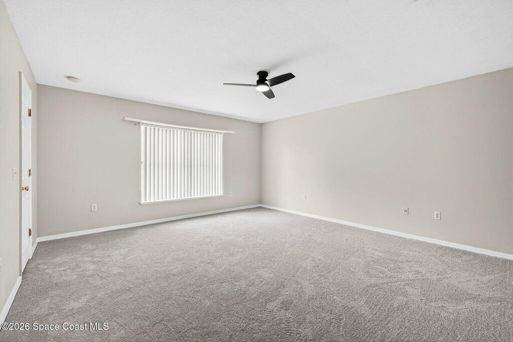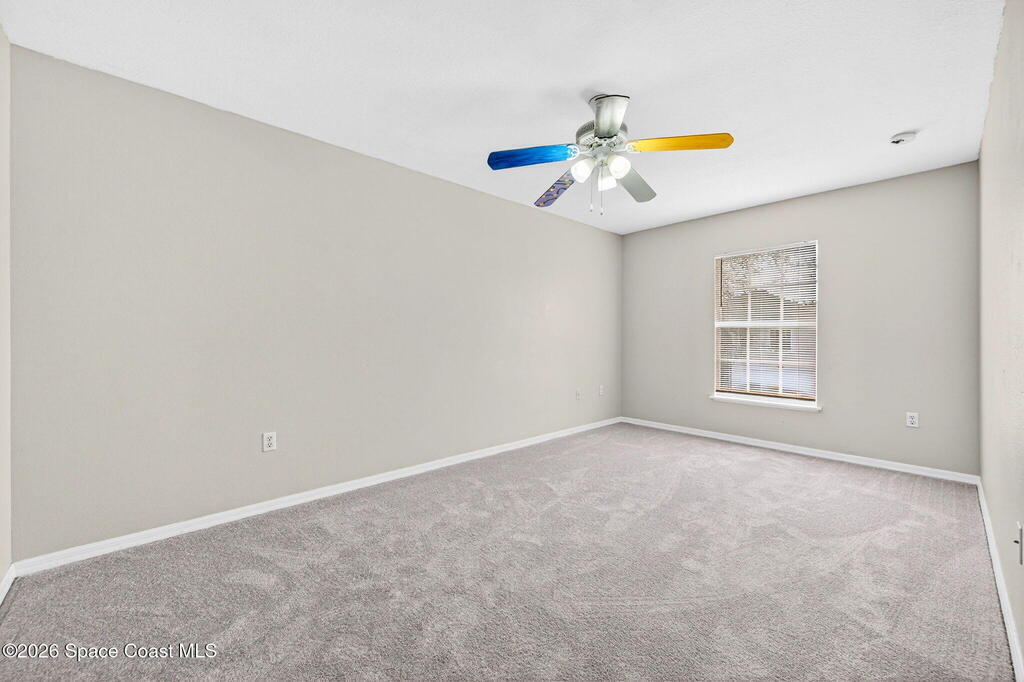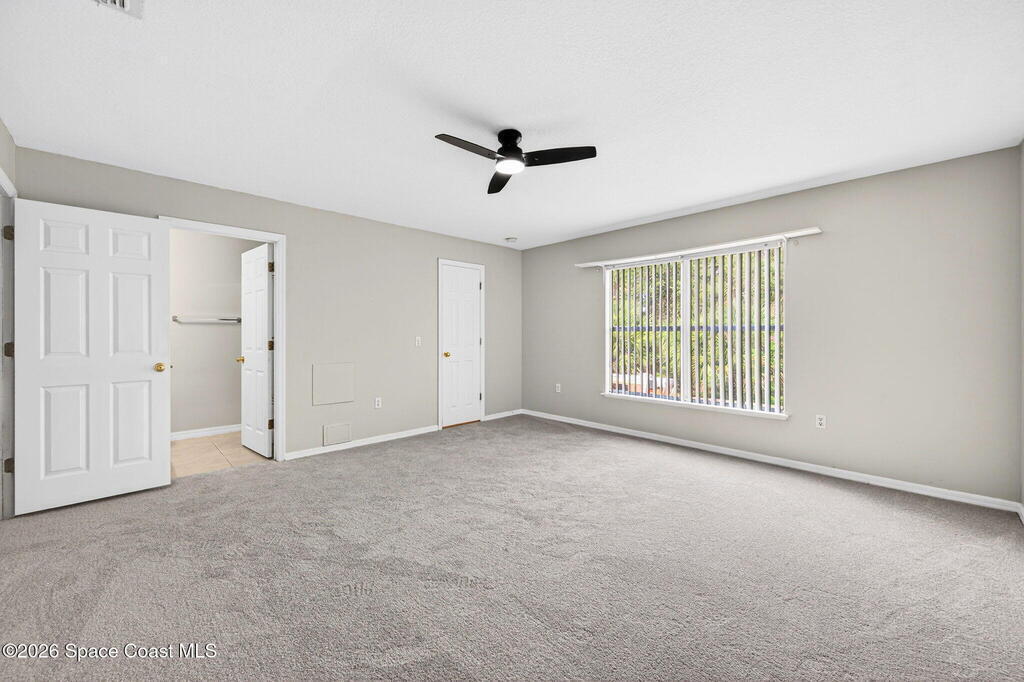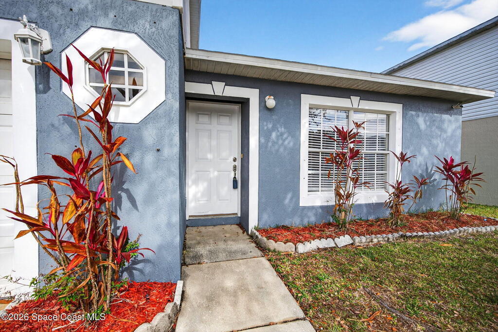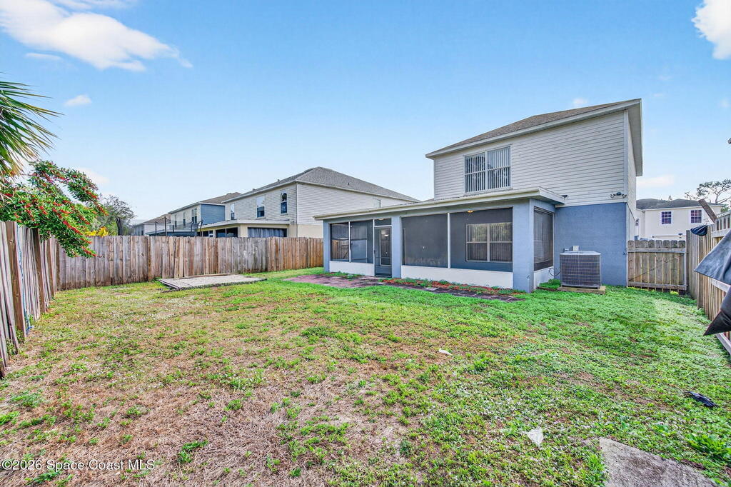 PRICED TO SELL! Located in Melbourne in Palmwood community. This 4-bedroom, 3-bath, 2-story home sits toward the end of the neighborhood by the cul-de-sac with only 59 homes total in the community. Enjoy the rare convenience of TWO PRIMARY Suites with one upstairs and one downstairs. Freshly painted inside and out, with brand-new carpet upstairs, stylish LVP downstairs, and a 2023 roof, 2017 AC and WH, Taexx built-in pest control, custom hurricane covers with mounts, and a security system provide peace of mind. The extended paver driveway leads to a 2-car garage. Relax or entertain on the huge screened porch overlooking a private fenced backyard with no rear neighbors. Just minutes to I-95, beaches, shopping, dining, and all that Melbourne has to offer. Homes with these features, location and price are rare. Schedule your showing today! Be sure to look at all the photos to include floor plans. Great for an investment home also!