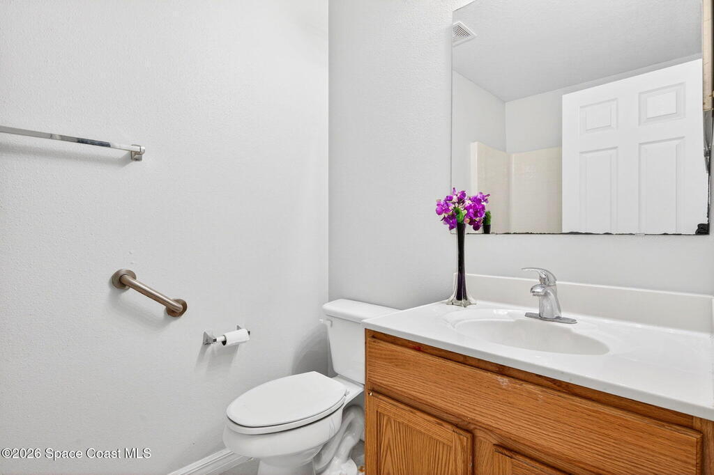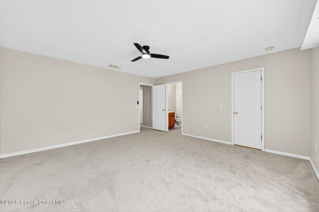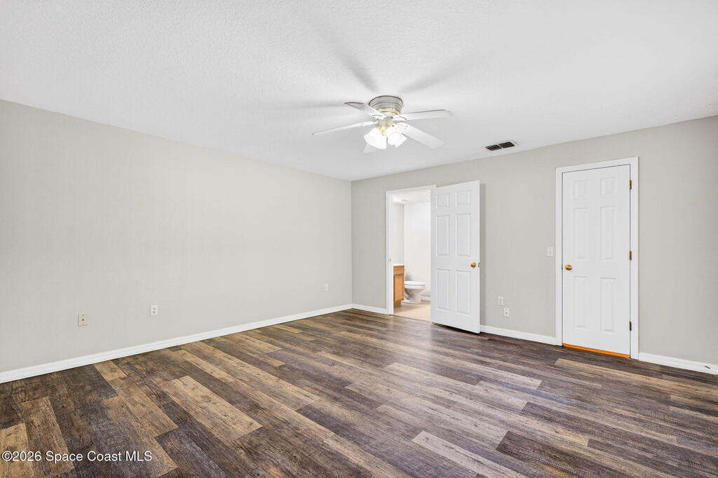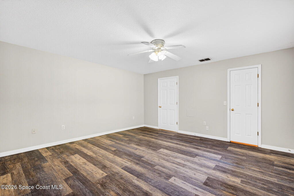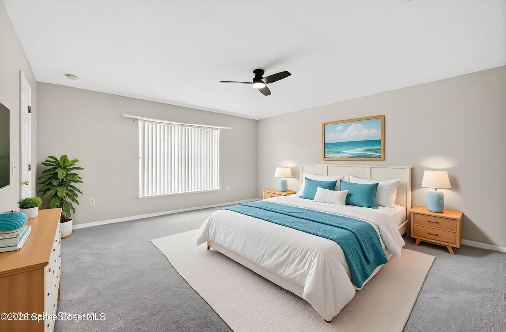 PRICED TO SELL! Located in Melbourne in Palmwood community. This 4-bedroom, 3-bath, 2-story home sits toward the end of the neighborhood by the cul-de-sac with only 59 homes total in the community. Enjoy the rare convenience of TWO PRIMARY Suites with one upstairs and one downstairs. Freshly painted inside and out, with brand-new carpet upstairs, stylish LVP downstairs, and a 2023 roof, 2017 AC and WH, Taexx built-in pest control, custom hurricane covers with mounts, and a security system provide peace of mind. The extended paver driveway leads to a 2-car garage. Relax or entertain on the huge screened porch overlooking a private fenced backyard with no rear neighbors. Just minutes to I-95, beaches, shopping, dining, and all that Melbourne has to offer. Homes with these features, location and price are rare. Schedule your showing today! Be sure to look at all the photos to include floor plans. Great for an investment home also!