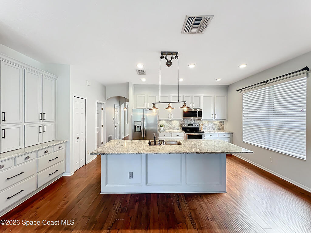 Welcome to 4420 Cleary Way, an exceptional 5 bedroom, 2.5-bathroom home located in the highly sought-after Avalon Park community. Offering 3, 879 square feet under roof, this beautifully maintained residence backs up to a peaceful conservation area, providing privacy and serene views. Built in 2005 and thoughtfully updated, this home features a new roof (2023) and two new A/C systems (2024) for comfort and peace of mind. The open and functional floor plan includes a formal dining room, spacious living room, and family room, all enhanced by beautiful laminate wood and tile flooring with abundant natural light. The large, updated kitchen is perfect for entertaining, showcasing granite countertops, stainless steel appliances, ample cabinetry, and a generous center island ideal for gatherings and casual dining. A large 9 x 13 laundry room is located on the first floor with extra cabinets and a utility sink. The primary suite is conveniently located on the first floor, offering a true