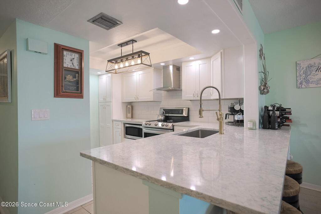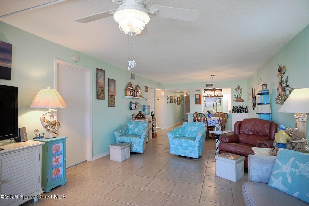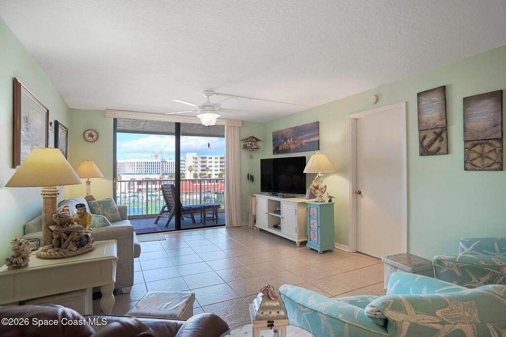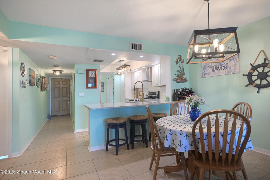 Welcome to coastal living at its best in this beautifully updated 2/2 condo in the heart of Cocoa Beach. Located on the fourth floor, this residence offers a bright, open layout designed to capture the relaxed beachside lifestyle. Tile throughout, recent complete renovation to kitchen with beautiful cabinets & countertops & both baths completely renovated. Shutters replaced 2018 and AC and water heater replaced 2023. The primary suite features ample closet space an en-suite bath, while the second bedroom and full guest bath provide comfort and flexibility for guests or a home office. Deeded shared garage for convenience of beach gear, bikes and car with resort style amenities and a 24/7 guard gate. Enjoy ocean breezes and the convenience of beachside living just steps from the sand, with easy access to Cocoa Beach's dining, shopping and entertainment.