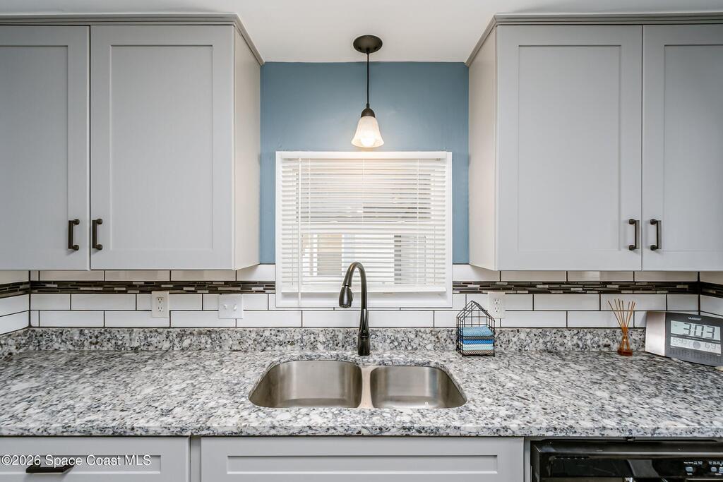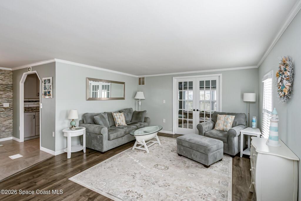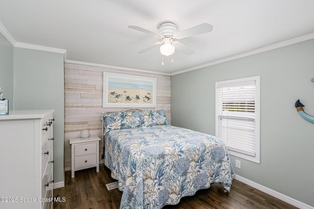 Immaculate and exquisitely updated 2-bedroom, 2-bathroom retreat located in the heart of amenity-rich Barefoot Bay, close to the golf course and a short walk to one of the community's three pools. This home was taken down to the studs and completely remodeled, featuring insulated interior walls and new drywall throughout. Other updates include: roof, vapor barrier, plumbing, modern electrical outlets/switches/fixtures.Quality craftsmanship is evident in every room, with beautiful tile-work, accent walls, new doors and windows. The kitchen offers solid wood cabinetry, quartz countertops, a tile backsplash, and like-new appliances. Both bathrooms feature tiled surrounds, with a marble walk-in shower in the primary suite.Enjoy outdoor living in the large screened-in patio, complete with tasteful furnishings and an attached storage room, plus additional patio space at the rear of the home within a fenced yard. Truly a turnkey property offering comfort, style, and peace of mind.