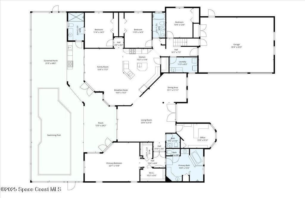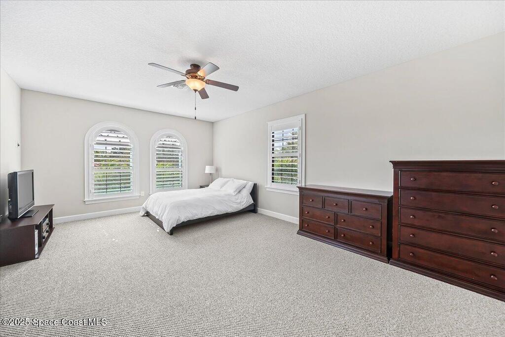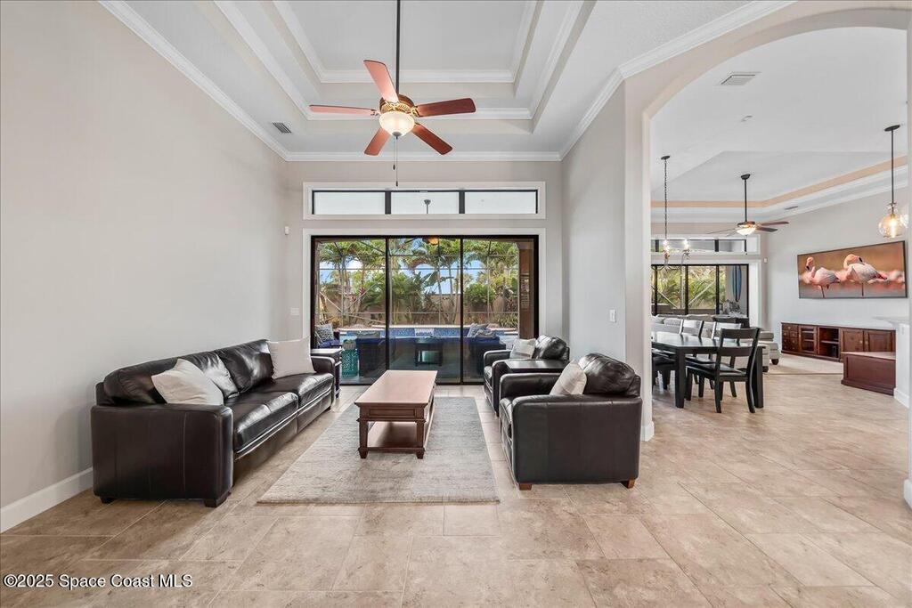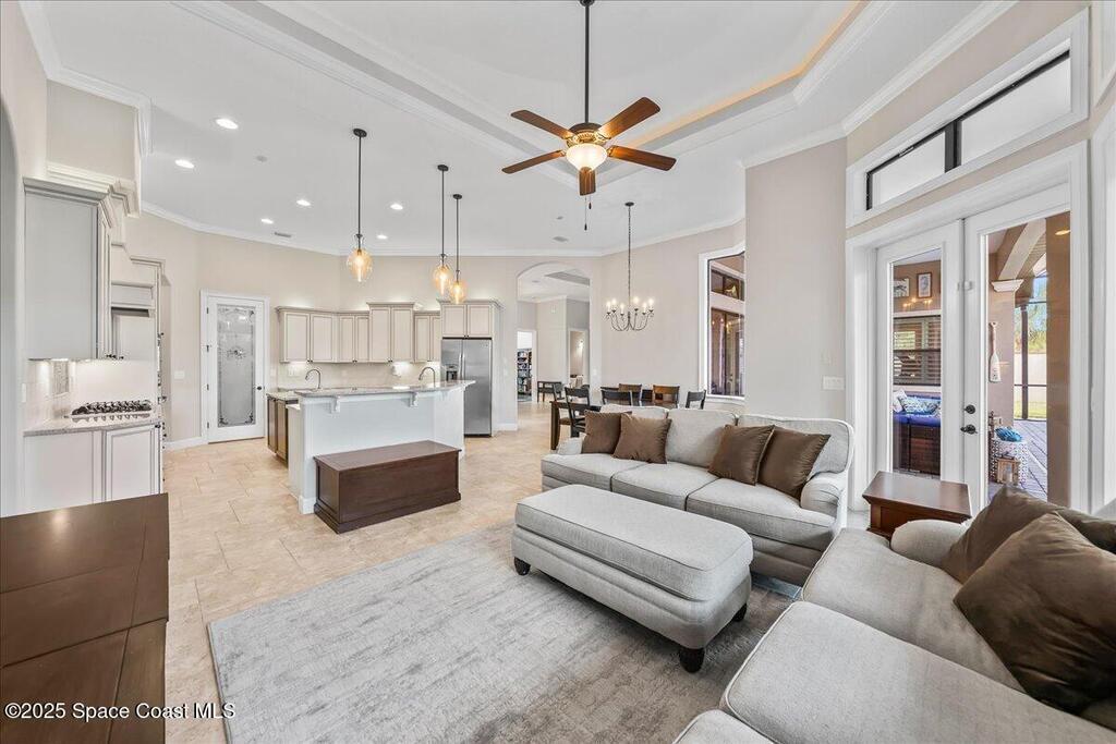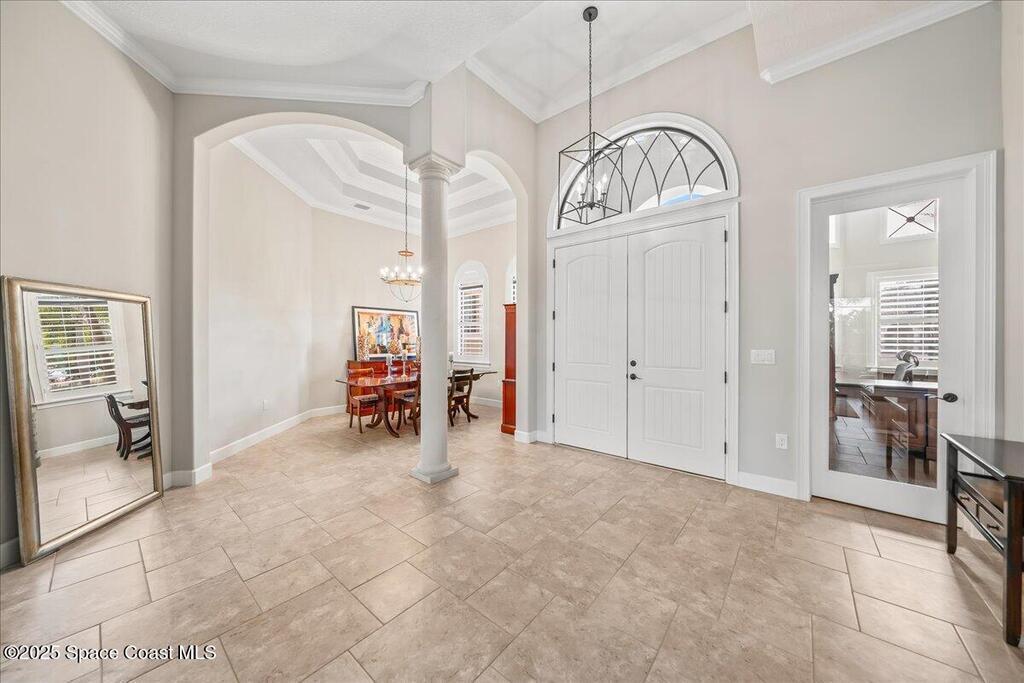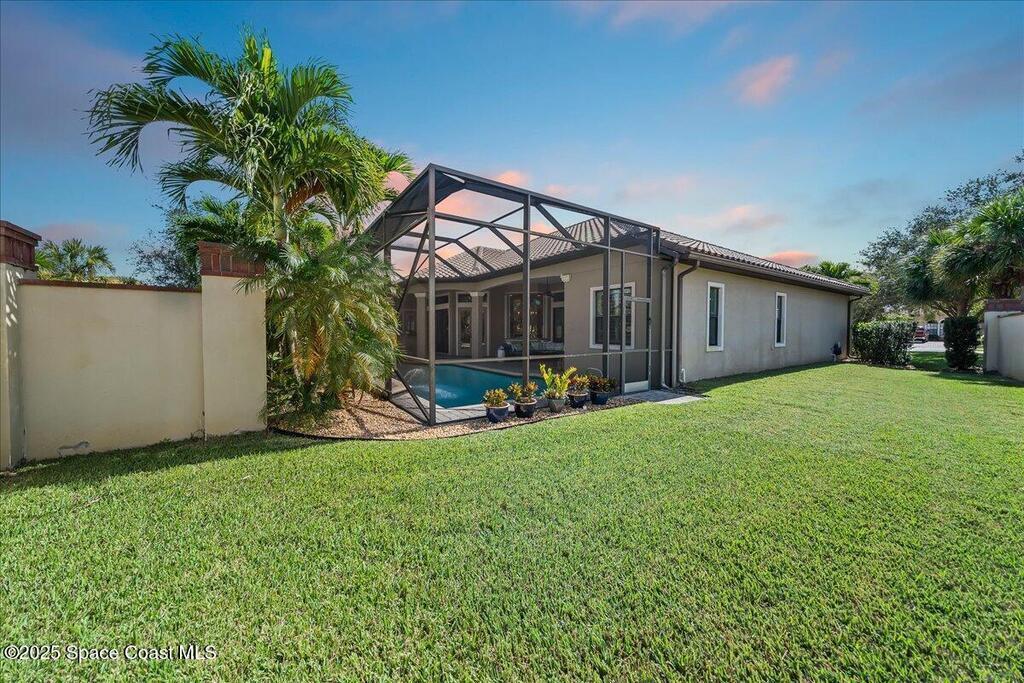 Discover this stunning custom-built pool home in the prestigious gated Colfax Landing community of West Viera. This expansive residence features 6 bedrooms (or 4 bedrooms plus an office and bonus room) and five bathrooms, with a 3 car garage- ideal for family living. Bask in the elegance of tray ceilings soaring up to 14 ft in areas, crown molding, 8 foot doors, plantation shutters, and an abundance of sliders and French doors leading to a tropical lanai that floods the interior with natural light. The gourmet kitchen boasts custom cabinetry, granite countertops, soft-close drawers, under-cabinet lighting, SS appliances, a 5 burner gas range and a spacious pantry. Step outside to the private screened-in heated pool with a tranquil water feature, covered seating area, dining area and a summer kitchen perfect for family BBQS. Located in a top-rated school zone with community amenities nearby, this home offers both luxury and convenience, just a 30 minute drive to the beach and close to