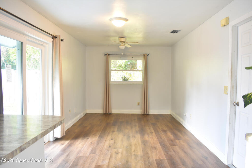 Welcome to this beautiful 3-bedroom, 2-bath home in Fairway Estates in Rockledge. Inside you will find a stunning kitchen with bright cabinets, elegant countertops, and sleek stainless steel appliances. The interior features comfortable living spaces, wood-look flooring, and modernized bathrooms designed for everyday living. The home has impact windows throughout which enhances the natural light and improves energy efficiency. The large backyard patio is great for unwinding in the evenings or perfect for hosting multiple guests. It is conveniently located with golf course, local restaurants, schools, parks, community pool, and shopping in the area.