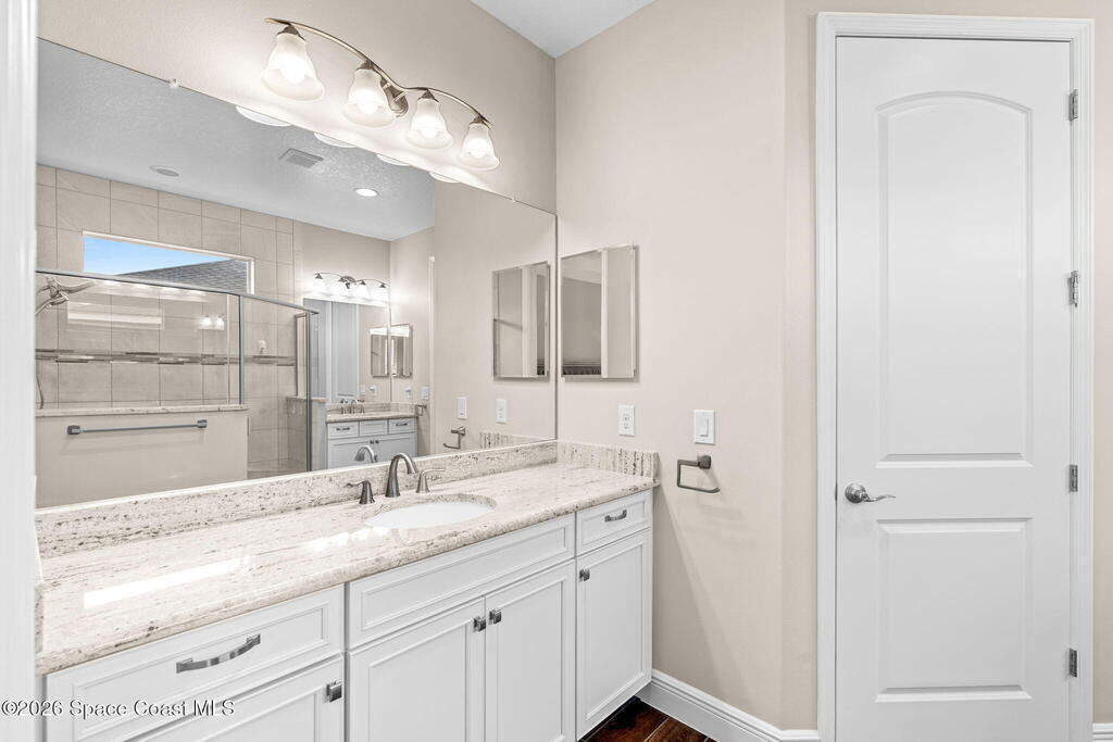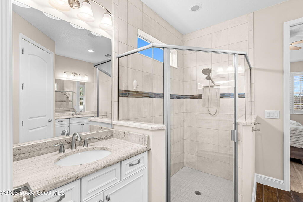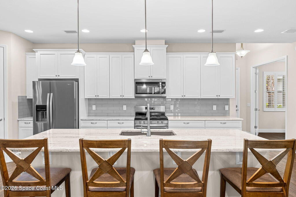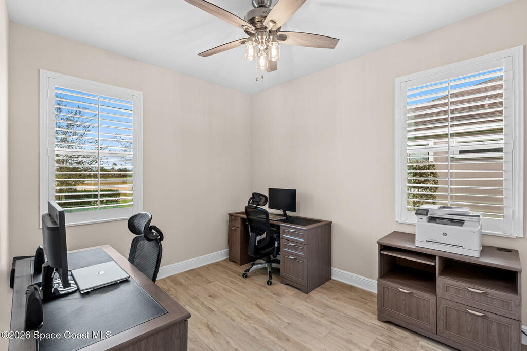 Built in 2019, this beautifully maintained home at 7377 Bluemink Lane offers the space, comfort, and lifestyle today's buyers are looking for. With 4 bedrooms, 3 full bathrooms, and a dedicated office, the layout is ideal for busy households, remote work, and hosting guests with ease.Inside, you'll immediately notice the thoughtful updates and easy-care finishes. Luxury vinyl plank flooring in the bedrooms and tile throughout the main living areas create a clean, modern look while standing up to everyday life. Upstairs, a private bedroom with its own ensuite bathroom is perfect for guests, teens, or a quiet retreat.The heart of the home is the kitchen designed for both cooking and connection with a gas range, granite countertops, and a gas tankless water heater. Whether it's a casual weeknight dinner or a weekend gathering, the space flows effortlessly to the outdoors through Andersen French doors added in 2024, opening to the lanai for true indoor-outdoor living.