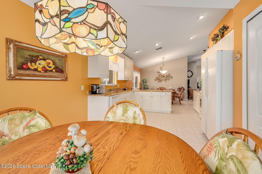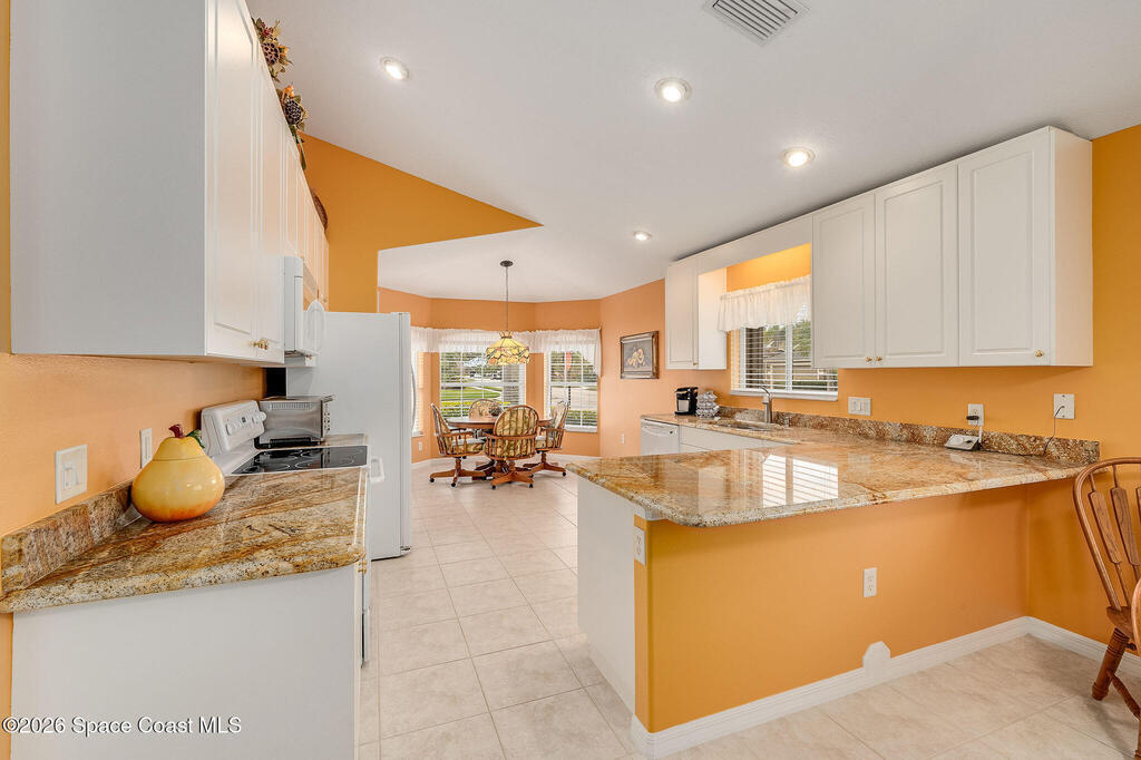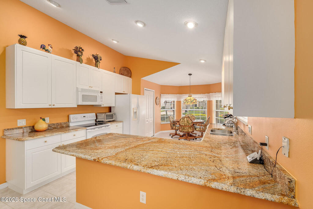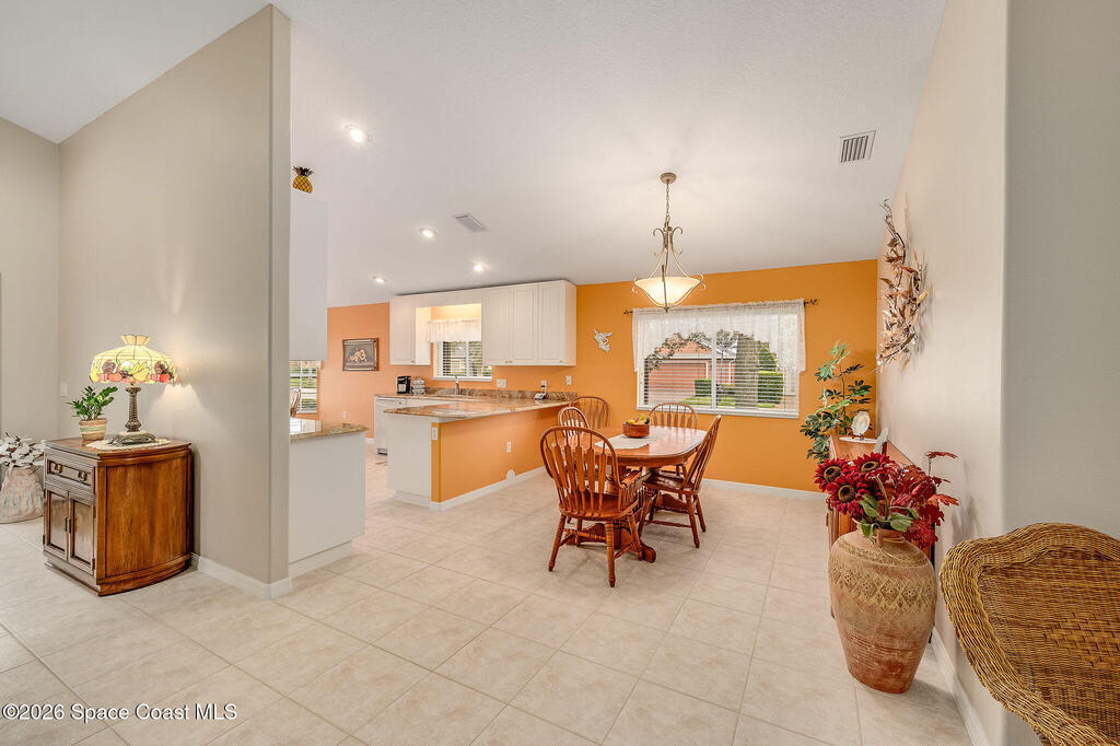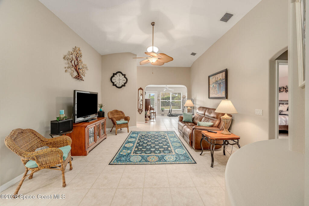 Situated on a desirable corner lot in the much sought-after, 24-hour Guard-Gated 55+ community of Heritage Isle, this beautifully maintained 3BR/2BA offers comfort, style, and a truly vibrant lifestyle. Vaulted ceilings and tile flooring throughout -no carpet- create a bright, airy feel, while the spacious kitchen features granite countertops, a breakfast bar, and a cozy nook perfect for morning coffee. The inviting sunroom adds flexible living space, ideal for relaxing or entertaining. The primary suite is a peaceful retreat with a generous walk-in closet, dual sinks, and a large walk-in shower. Accordion shutters and a freshly painted exterior (2025) provide peace of mind. The quarterly HOA of $1, 159 includes exterior maintenance, exterior insurance, making ownership effortless! Enjoy resort-style living with a 21, 000 sq. ft. clubhouse, cafe, tennis, pickleball, heated pool, spa, fitness center, and a full social calendar.Conveniently located in the heart of Viera!