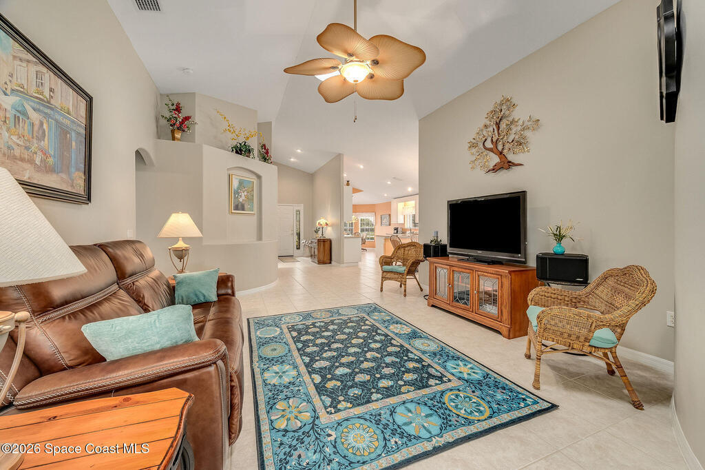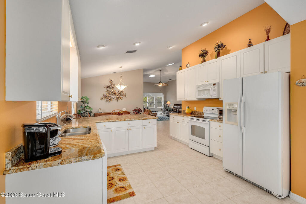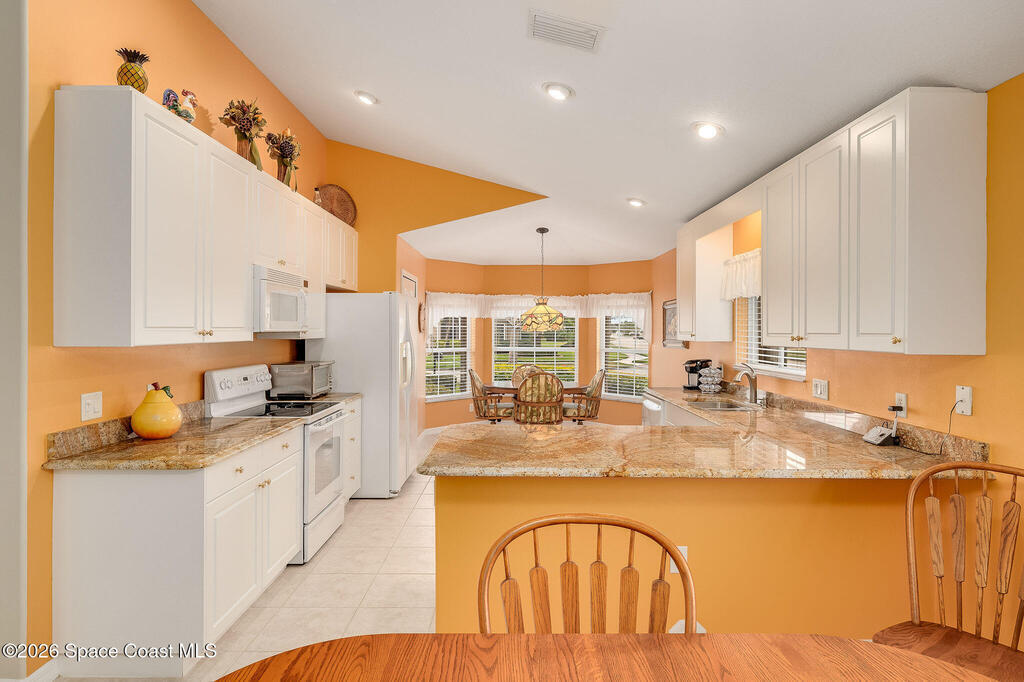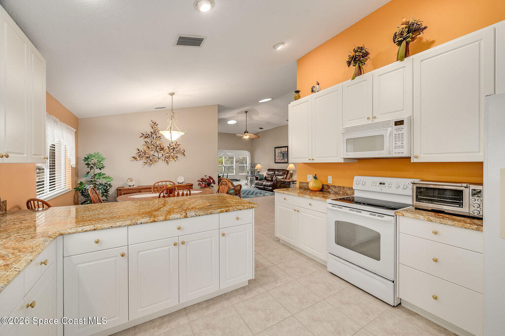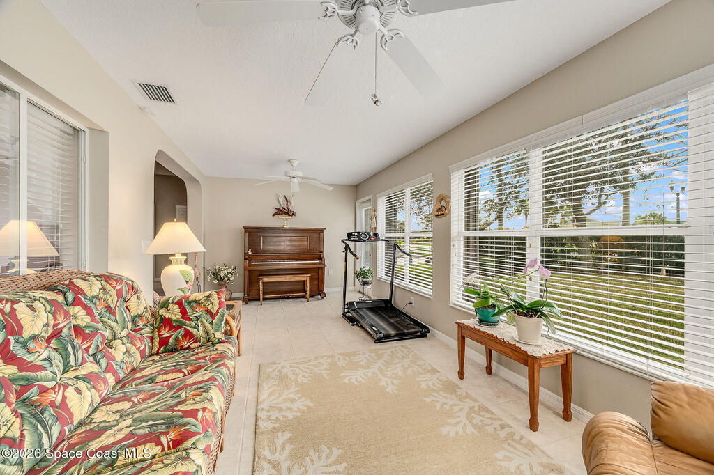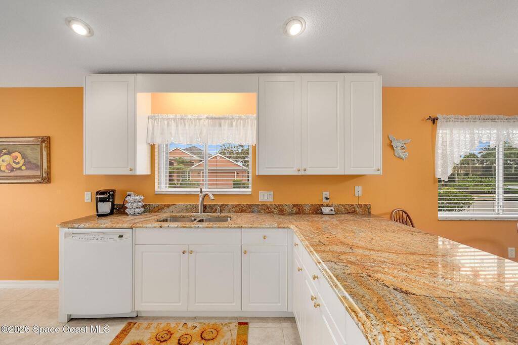 Situated on a desirable corner lot in the much sought-after, 24-hour Guard-Gated 55+ community of Heritage Isle, this beautifully maintained 3BR/2BA offers comfort, style, and a truly vibrant lifestyle. Vaulted ceilings and tile flooring throughout -no carpet- create a bright, airy feel, while the spacious kitchen features granite countertops, a breakfast bar, and a cozy nook perfect for morning coffee. The inviting sunroom adds flexible living space, ideal for relaxing or entertaining. The primary suite is a peaceful retreat with a generous walk-in closet, dual sinks, and a large walk-in shower. Accordion shutters and a freshly painted exterior (2025) provide peace of mind. The quarterly HOA of $1, 159 includes exterior maintenance, exterior insurance, making ownership effortless! Enjoy resort-style living with a 21, 000 sq. ft. clubhouse, cafe, tennis, pickleball, heated pool, spa, fitness center, and a full social calendar.Conveniently located in the heart of Viera!