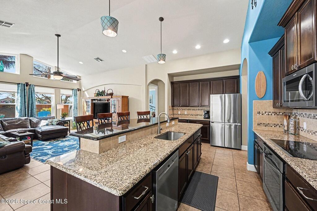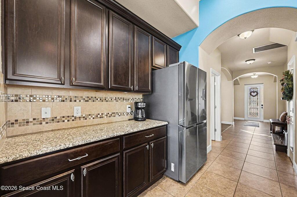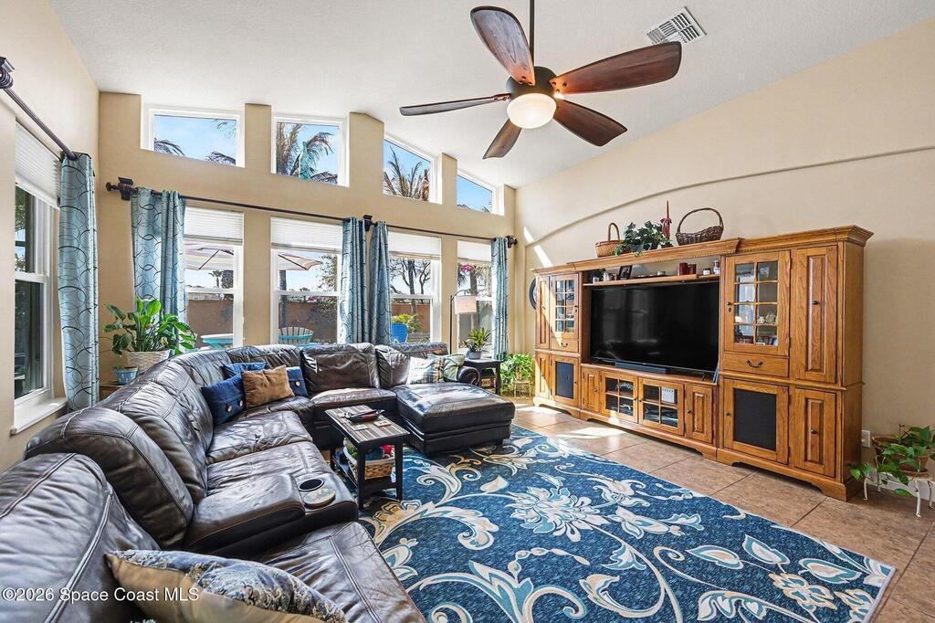 Welcome to this stunning 4-bedroom, 3.5-bath residence in the highly desirable, gated Montecito community of Satellite Beach. Designed for both comfort and style, this home offers a true tropical oasis just a couple of blocks from the ocean and minutes from Patrick Space Force Base.The backyard is ideal for Florida living, featuring a saltwater pool added in '20, screened porch, and vinyl privacy fence--perfect for entertaining or relaxing in privacy. A beautiful barrel tile roof and freshly painted exterior(''24), 2 HVACS '21 &'18. Inside, the open-concept layout is filled with natural light and enhanced by new interior lighting ('22). The expansive kitchen is a centerpiece of the home, showcasing a large island, granite countertops, generous cabinetry, and a large pantry, all open to the main living areas, ideal for gatherings and everyday living. The primary suite is conveniently located downstairs and features a large walk-in closet & a spa-like bathroom.