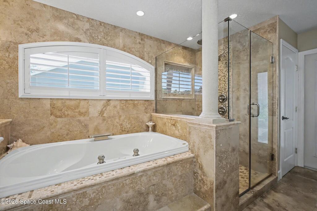 **Gorgeous, Elegant & Spacious best describe this Luxuriously-Appointed 4 Bedrm S Merritt Island Home Located in very Desirable WATERFRONT Community w/its own DOCK! Grand Entry Greets You w/Stunning Lead Glass Doors, Custom Brazilian Cherry Wood Floors, Impressive Winding Staircase & Living Rm Rotunda overlooking Peaceful Pond. Family Rm Offers Relaxing Moments w/the Remote Fireplace. Cathedral Ceilings surround the Spacious Rms & Chef's Kitchen features Premium Stainless Applcs & Granite Countertops while acting as the Central Hub for Entertaining/Family time while Enjoying Sparkling Pool Views just beyond. All Bedrms are a Generous size & offer Deep Closets too. Beautiful Bathrms have Spa-style touches incl/Jetted Tub in Master Bath. This Former MODEL Home is Adorned throughout w/Custom Accents, incl/ Molding, Columns & Design. LG Pavered Drivewy Welcomes You Home or Offers Room for Your Guests to Stay Awhile. NEW 2023 ROOF, 2 AC's, IMPACT Windows, Etc-Ask for Detailed Features List