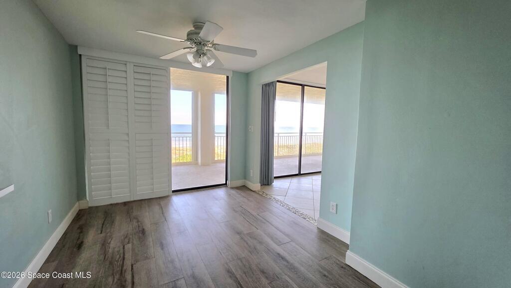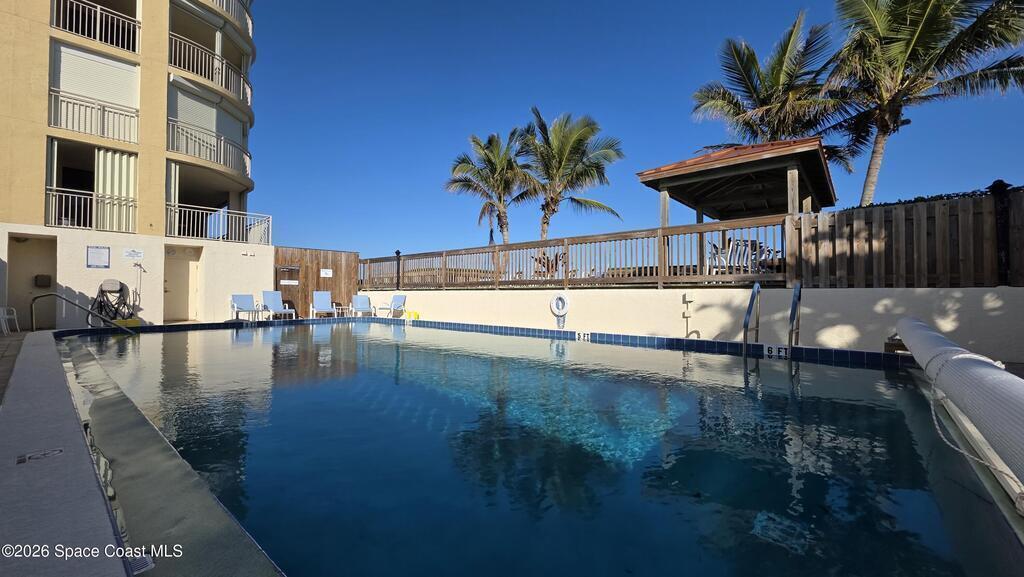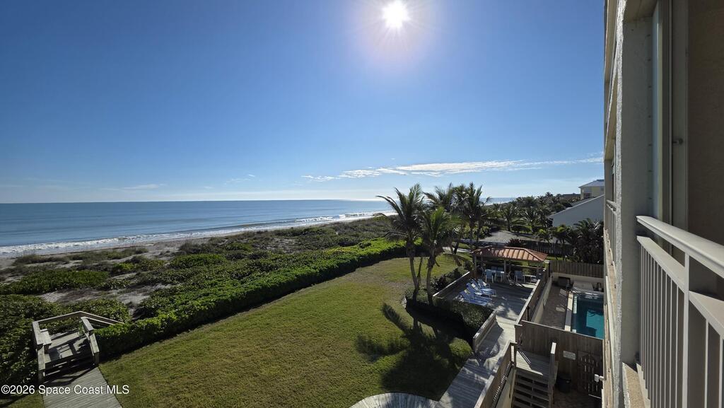 Beautiful oceanfront 3 bedroom, 2 bath condo available in the Constellation Condo Community. Watch rocket launches and sunrise over the ocean on the east side patio and stunning sunsets from the west facing terrace. This kitchen has a ton of counter space for the avid cooks. Large bedrooms and bathrooms. Home has a washer and dryer in the unit. There is a nice entryway area with lots of storage! This unit is very large with a huge open living space with wet bar. There are sliding hurricane shutters for extra security during storm season. Community has a pool, sauna, under building parking for one vehicle. There is private beach access as well. Don't miss out on this one!!!