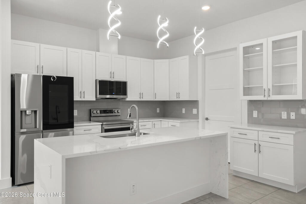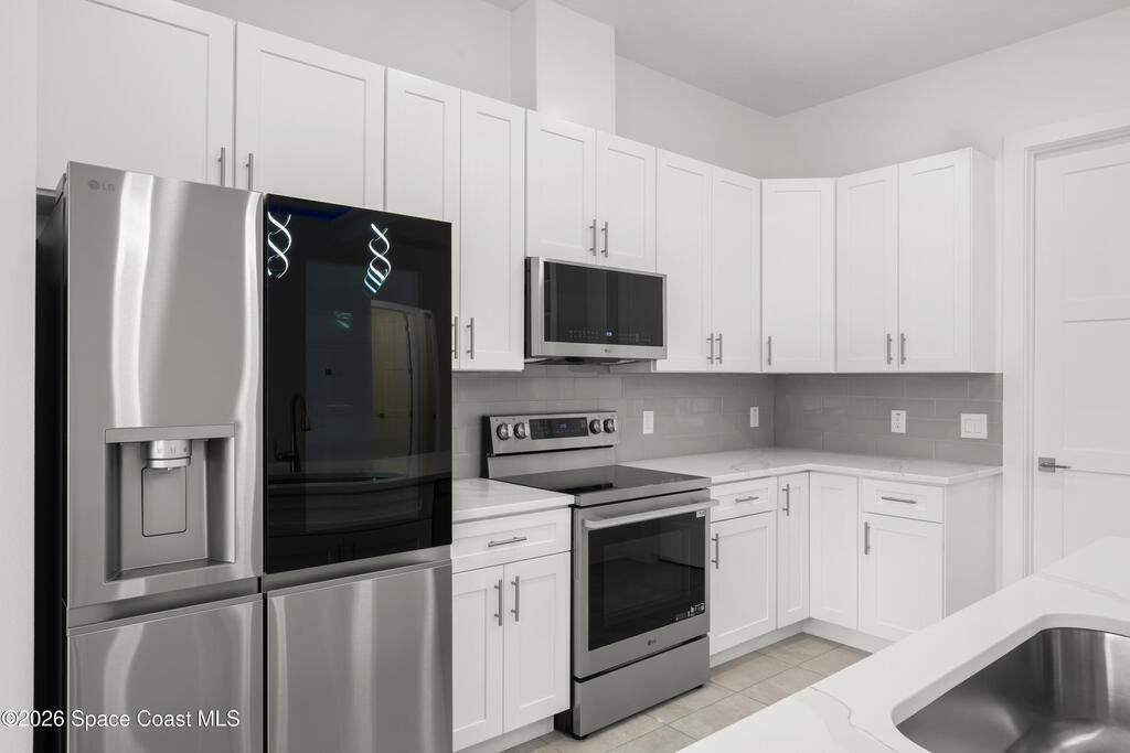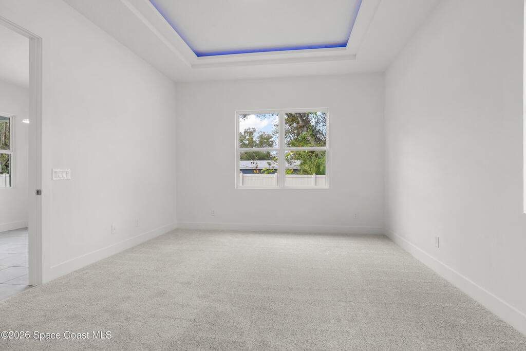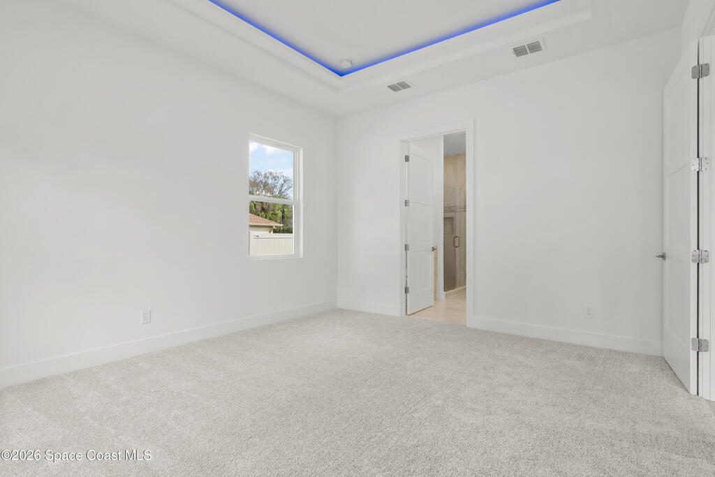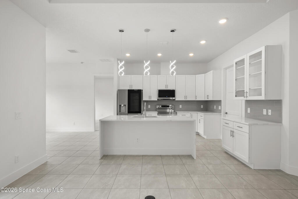 : Discover your dream home on this expansive 0.35-acre lot, nestled on a tranquil street in vibrant west Melbourne, This exquisite residence shines with upgrades: luxurious granite and waterfall-edge quartz countertops adorn the gourmet kitchen, enhanced by a modern tile backsplash and a powerful vented range. Gleaming tile floors flow seamlessly, accented by stylish wall tile, while soaring tray ceilings and grand 8' interior doors elevate the home's elegance. The oversized kitchen island is ideal for entertaining, paired with plush upgraded carpet and padding in cozy living spaces. A rare 4' garage extension with an 8' door provides ample room for storage or hobbies. Blending modern sophistication with spacious comfort, this move-in-ready retreat suits families, professionals, or retirees perfectly. Photos are of the ACTUAL home!