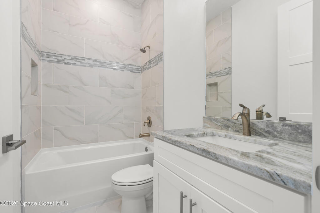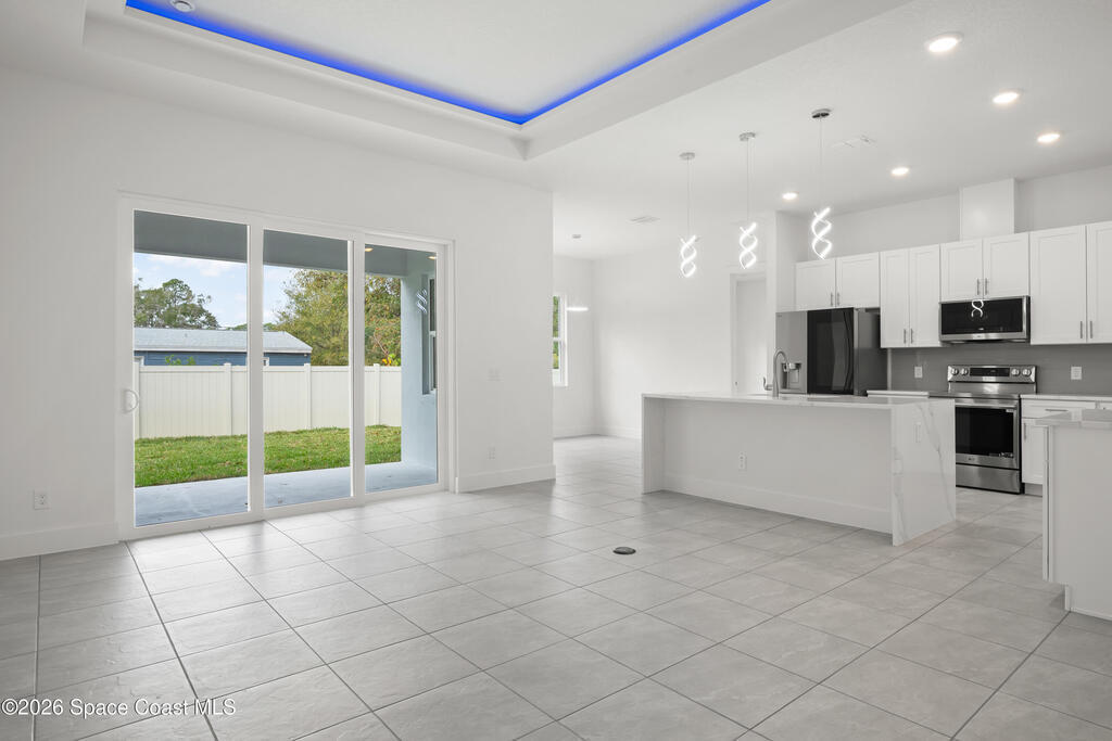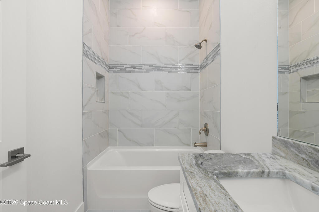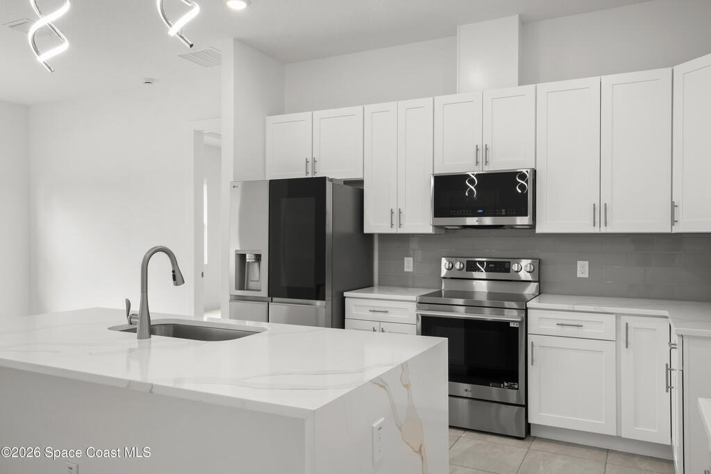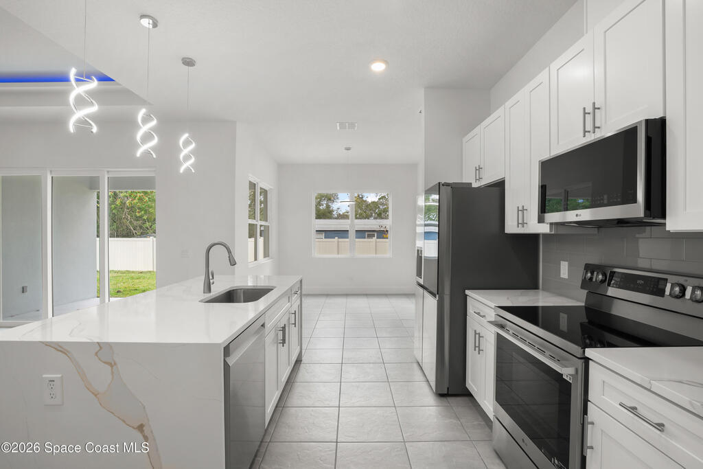 : Discover your dream home on this expansive 0.35-acre lot, nestled on a tranquil street in vibrant west Melbourne, This exquisite residence shines with upgrades: luxurious granite and waterfall-edge quartz countertops adorn the gourmet kitchen, enhanced by a modern tile backsplash and a powerful vented range. Gleaming tile floors flow seamlessly, accented by stylish wall tile, while soaring tray ceilings and grand 8' interior doors elevate the home's elegance. The oversized kitchen island is ideal for entertaining, paired with plush upgraded carpet and padding in cozy living spaces. A rare 4' garage extension with an 8' door provides ample room for storage or hobbies. Blending modern sophistication with spacious comfort, this move-in-ready retreat suits families, professionals, or retirees perfectly. Photos are of the ACTUAL home!