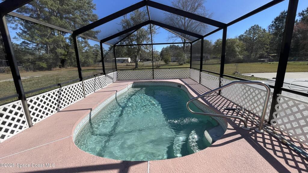 Introducing this ''One owner'' All Brick Home nestled on 1 acre featuring 2 large bedrooms with oversized walk in closets, Living room, Dining room, Spacious Kitchen with step up breakfast bar overlooking Family room. French door access to screened back porch and inground pool. Offering 1 car garage and 2 carports... bring your boat & RV. New well, septic tank, fully fenced in yard - chain link. Other features include: ceiling fans, separate laundry room with window and door access to rear patio, new vinyl plank flooring in all main living areas, new refrigerator. Large owners suite has bathroom with dual sinks in vanity and tub/ shower combination. Amazing and rare opportunity do not miss!