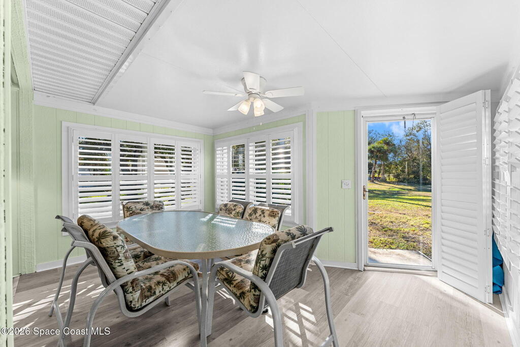 Set on a full acre with a sparkling pool, this updated home offers space, privacy, and the kind of flexibility that's hard to come by. Major improvements include a new screen enclosure, a metal roof (2020), accordion shutters (2019), HVAC (2019), and new windows (2021), plus a freshly painted exterior in 2025 for a polished first impression. The kitchen has been updated with granite surfaces and thoughtful pull-out storage, while wood-look tile flows through the main living areas, complemented by classic plantation shutters. High vaulted ceilings and skylights keep the interiors feeling open and sunlit, and the oversized under-air sunroom creates an airy bonus space that works as anything from a casual hangout to a bright home studio. Best of all, there's no HOA--just room to live, relax, and enjoy the property.