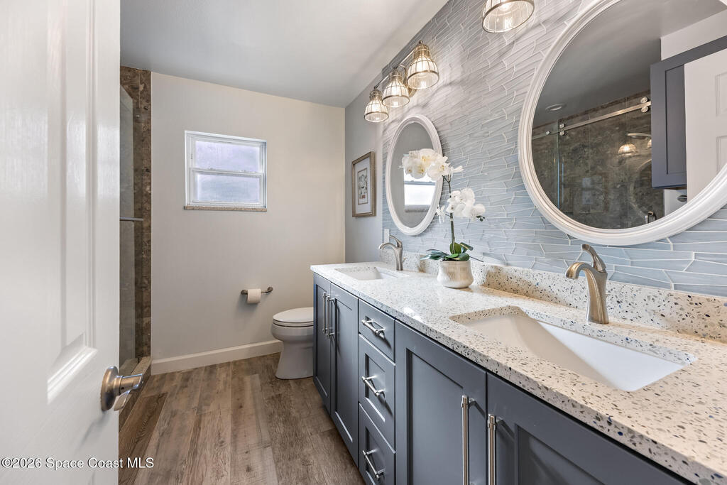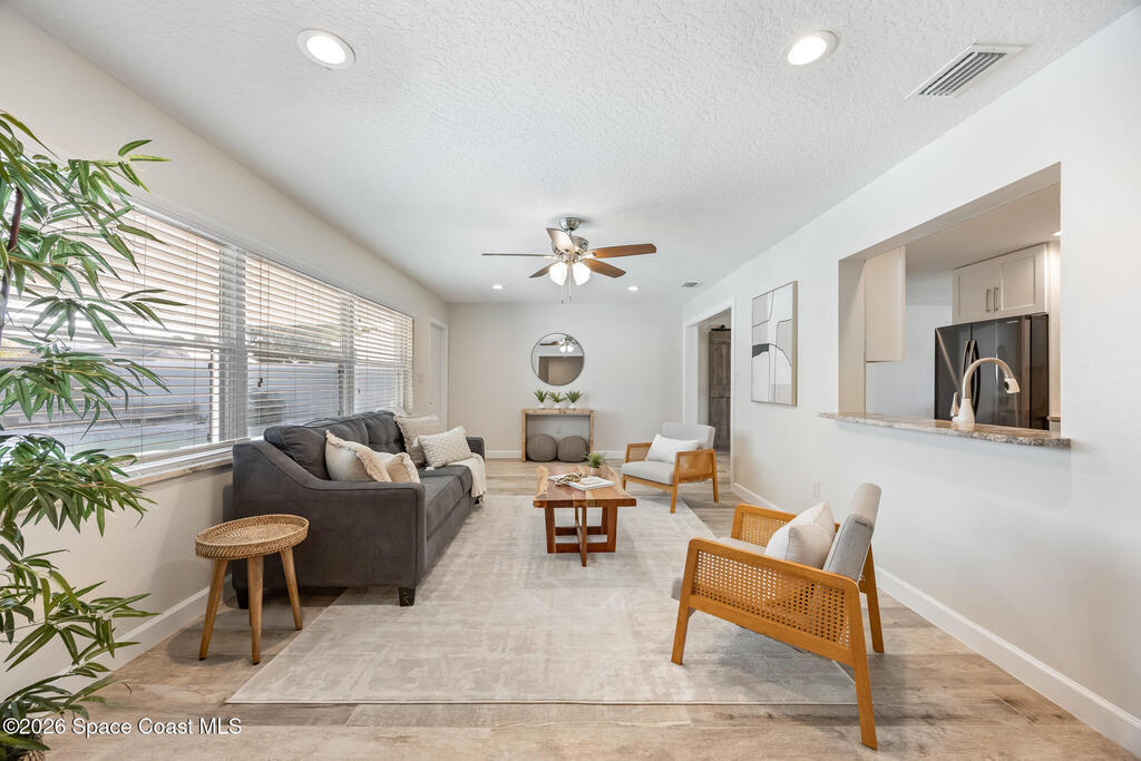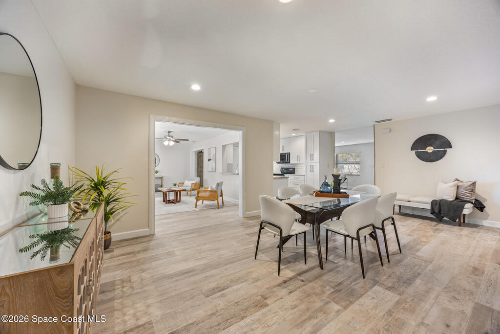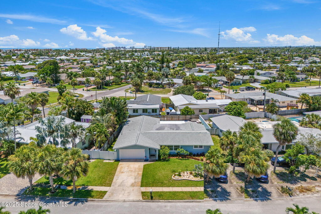 JJust two blocks from the ocean, this fully renovated 5-bedroom, 2-bath pool home offers over 2, 500 sq. ft. of bright, coastal-inspired living in the heart of Satellite Beach. Renovated between 2017-2020, the home features a 2017 roof, wood-look tile throughout the main living areas, and soft carpet in select bedrooms. The open-concept, split-bedroom floor plan is ideal for both everyday living and entertaining. Step outside to your private backyard oasis, perfect for swimming, relaxing, or watching rocket launches light up the sky. Hurricane shutters provide peace of mind, and a washer and dryer are included for added convenience. Just a short stroll to the beach, library, dog park, skate park, and more, this home offers space, style, and an unbeatable beachside location.