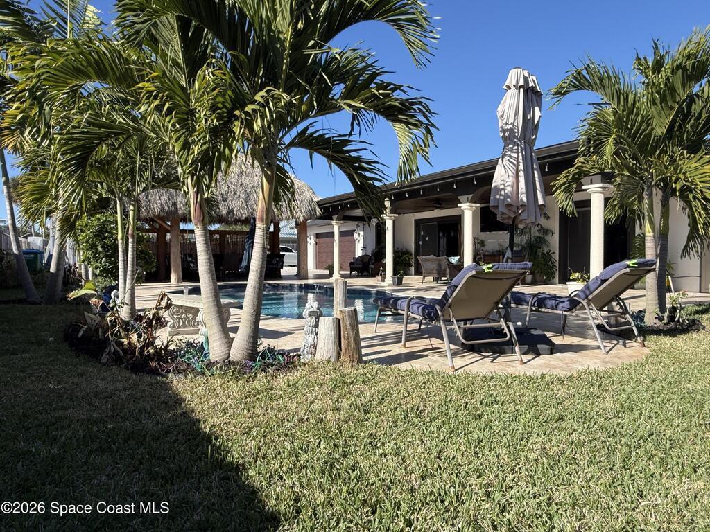 Totally remodeled home in the sought after SOFA part of Melbourne Beach ''Beachside'' A short golf cart ride 2 blocks to the beach. Must see this resort style home. Be the envy of family and friends with Florida outdoor style living at its finest. Pool has heater and chiller, outdoor kitchen, Hot and cold outdoor shower, Tiki Hut for outdoor dining, Large Lanai living area with large screen TV, Access off of Oak St and Cedar Ln with automatic gate controlled by phone or remote, room for boat or RV, all paver driveways and travertine pool deck, pool is new in 2024 as well as Lanai and tiki. Interior New, Electric panel, Water Heater, Kitchen, Master Bath, second bath, Tile Floors, trim and paint. New impact doors and windows. Home has wind Mitigation with all the credits for Insurance reduction. New Roof, Stucco, exterior paint, soffit and facia. Auto window treatment in Living room, fully landscaped yard with lighting. Don't miss this one! Seller is licensed Realtor and Licensed GC.