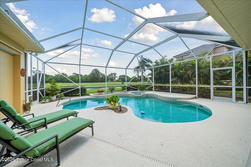 Tucked away on a private cul-de-sac in the gated subdivision of Baytree, this Arthur Rutenberg beauty is where elegance meets everyday fun! With 4 bedrooms, 4 baths, and a 3-car garage, there's space for everyone, and everything (tons of storage)! The heart of the home opens to a heated pool and lanai with sliders for seamless indoor-outdoor living. The designer kitchen is a chef's dream with granite countertops, a double oven, a spacious island, and a gas cooktop. Cozy nights come easy with a gas fireplace and custom surround sound, perfect for movie marathons or entertaining. Upstairs, a spacious rec room is ready for games, hobbies, or hangouts. Step outside and soak in views of the 13th green at Baytree National, surrounded by lush landscaping and amazing views of rocket launches. This home is equal parts luxury and lifestyle, come see why you'll never want to leave!