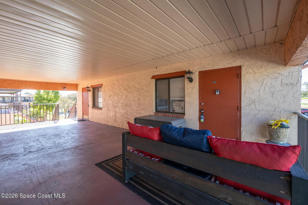 Discover this welcoming second-floor 1 Bed, 1 Bath FULLY FURNISHED END-UNIT condo! This charming home has a spacious living room, bedroom, and open floor plan kitchen with tile flooring throughout. Complete with a portable dishwasher and washing machine for convenience. Enjoy the comfortable covered front porch area and breezeway where you can relax and view rocket launches.Centrally located close to the beaches, dining and shopping in the heart of Melbourne! Wickham Park is close by for your recreational needs such as disc golf, local events and a dog park. Historic Eau Gallie Arts District, Viera Avenues, and Downtown Melbourne are minutes away!This PET-FRIENDLY community features a sparkling pool, BBQ area, clubhouse, playground, and on-site laundry. Cable and water are included in your monthly fees. Short-term one-month rental makes this an investor-friendly unit, or perfect for your own cozy slice of paradise. Don't miss this opportunity! Schedule your showing today!