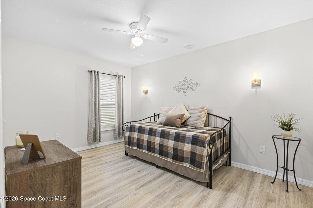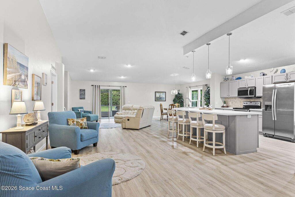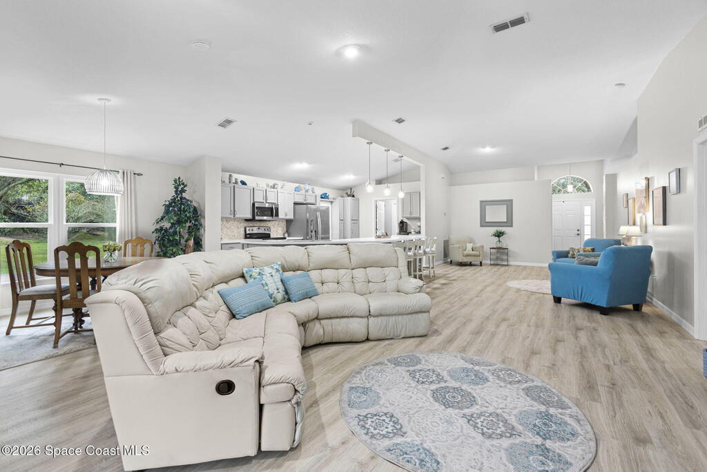 Meticulously maintained Majestic Oaks 3 bd/2 bath home on a private outside corner lot. 2025 ROOF & 2022 IMPACT WNDOWS w/ transferable warranties. AC 2021. Gorgeous laminate wood flooring with open concept, soaring ceilings, large kitchen Island, Coffee bar & beverage cooler complete the design! The primary bdrm offers updated tile shower and walk-in closet. Whole house water filtration, can lighting on the peaceful & spacious lanai, gutters and downspouts 2021! Salt water community pool is heated. Low HOA dues: does all lawn maint, just competed new street asphalt & sprinkler systems.