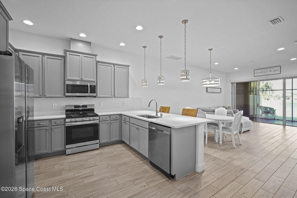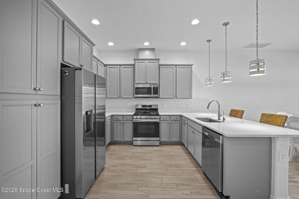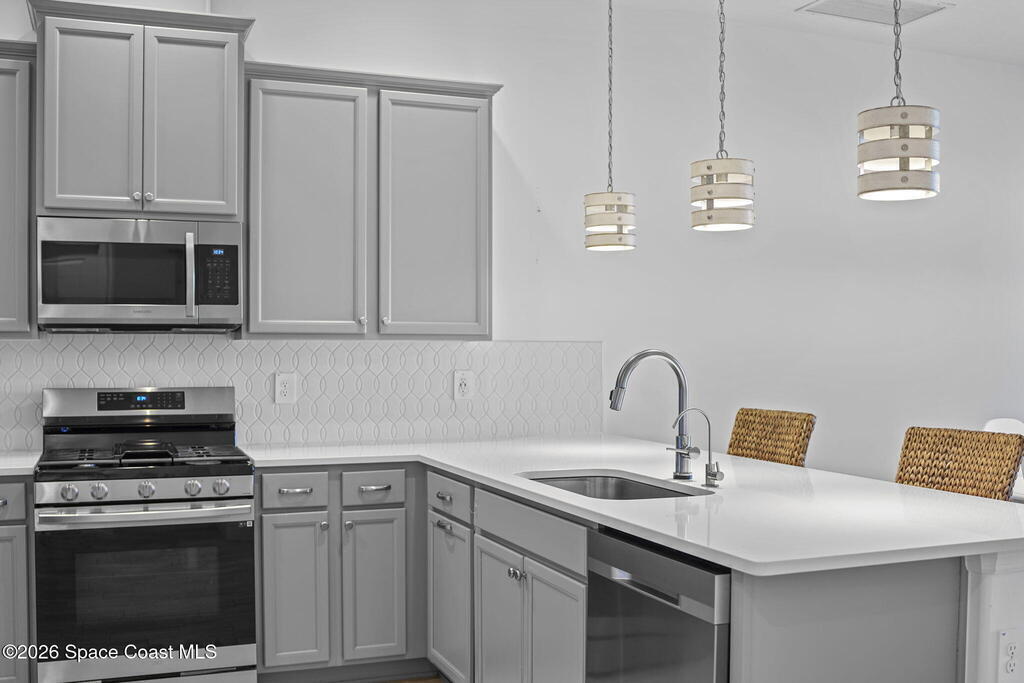 Welcome to your dream home in Avalonia, located in the heart of Viera, Florida, with a golf cart included. This upgraded 3-bedroom, 2-bath interior townhome offers just over 1, 400 square feet of comfortable living with over $30, 000 in upgrades and a $20, 000 premium water lot.Inside, you'll find custom blinds, California closets, and wood-look tile throughout the main living areas. The kitchen features stainless steel appliances including a gas stove, tile backsplash, breakfast bar, and 42-inch cabinets. The family room opens to peaceful water views through a double sliding glass door.The primary bath includes a large walk-in shower and double sinks. Enjoy the covered back porch with custom wood decking and a picture screen. The HOA covers roof replacement, lawn care, exterior paint, termite and pest control, basic cable, and internet for low-maintenance living.