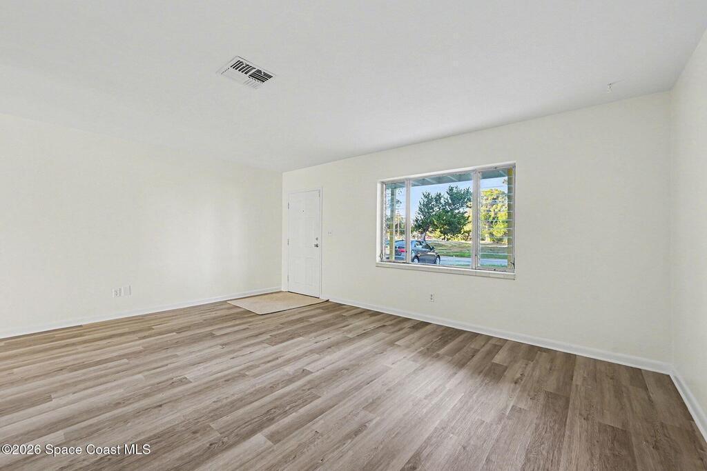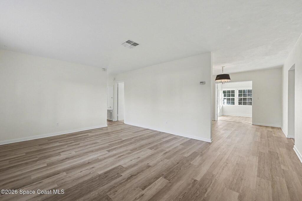 Welcome Home! 3-bed, 1.5-bath, 1-car garage on the Space Coast, offering excellent proximity to everything Melbourne has to offer. Situated on a larger corner lot, this home enjoys added space, privacy, and it's only 25+/- minutes to the beach. Inside, you'll find brand new paint throughout, creating a bright and refreshed interior. The home features new faux wood flooring in the main living areas and new carpet in the bedrooms, making it truly move-in ready. The flexible floor plan includes a bonus flex space filled with gorgeous natural light, perfect for a home office, playroom, or additional living area. Additional highlights include a roof replaced in 11/2020, an indoor laundry/utility room, a formal dining room and a large kitchen. Located in a central Melbourne location, this home is close to shopping, dining, major employers, and Melbourne Orlando International Airport, with easy access throughout the Space Coast.