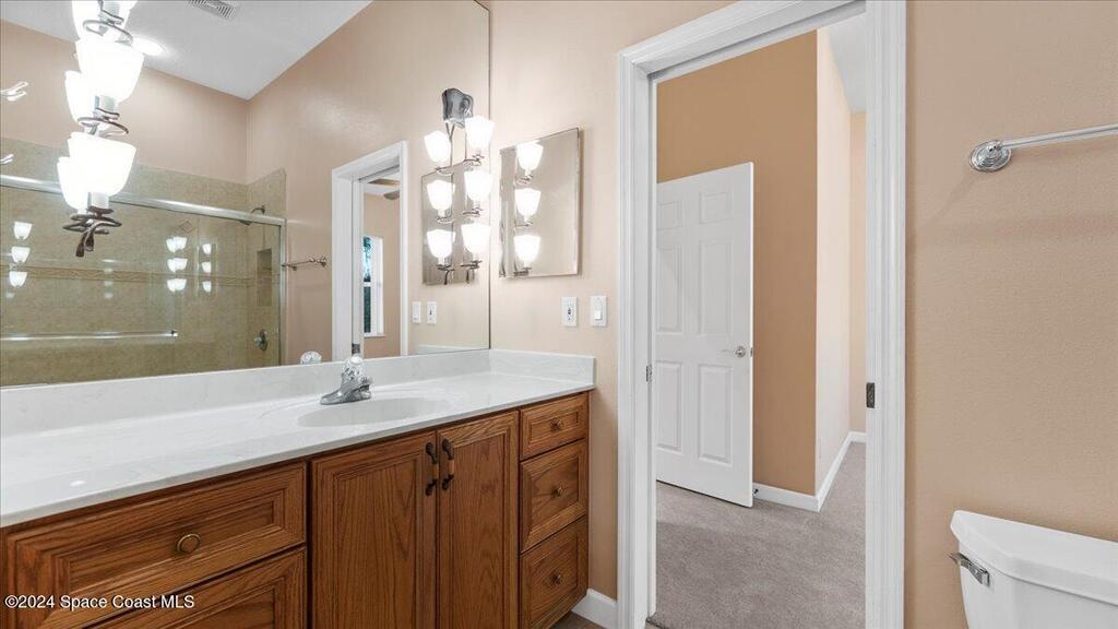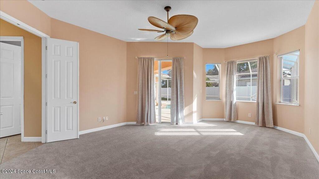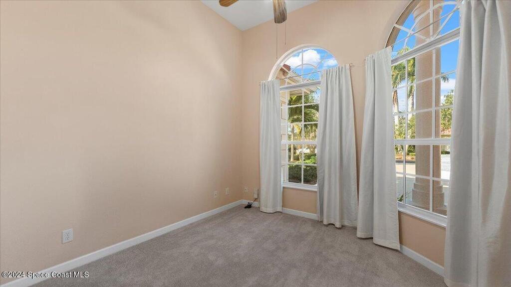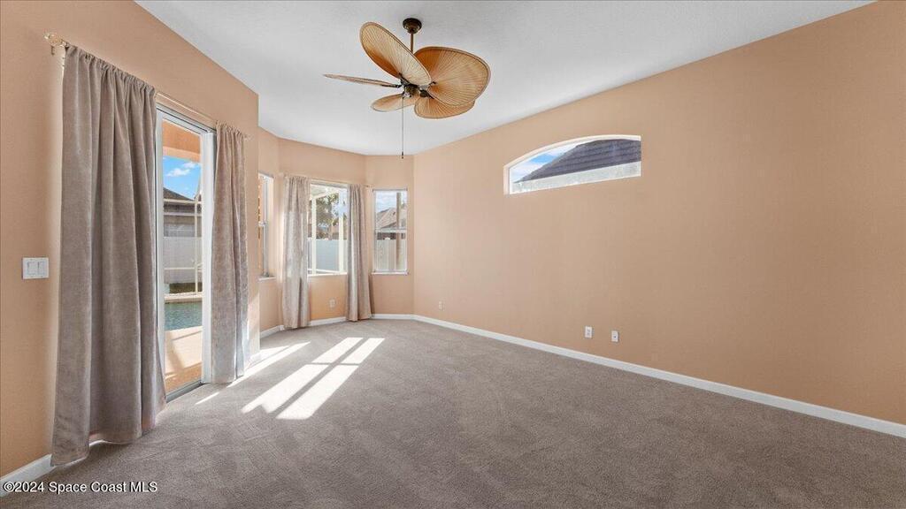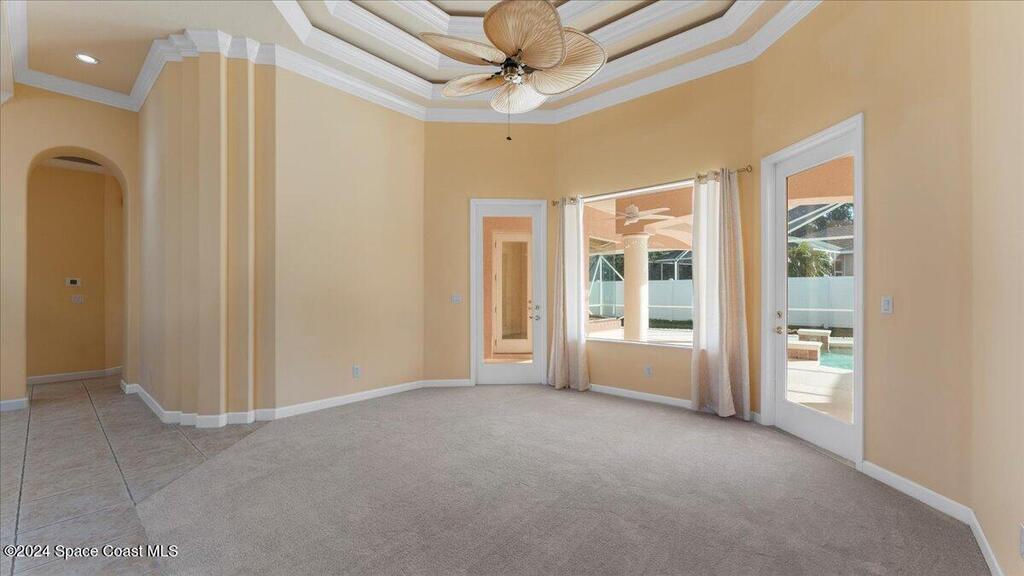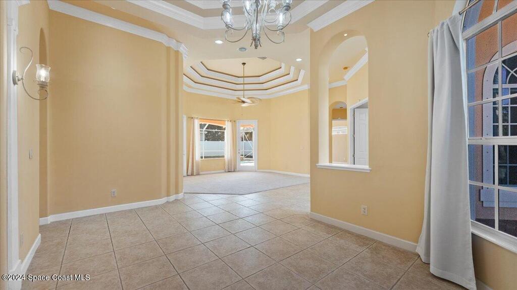 Located within the Casabella Subdivision, this 3051 Sqft, four-bedroom, three-bathroom luxury home is the epitome of elegance and comfort. Located in a prestigious gated community, the home offers privacy and peace of mind. Each room is designed with meticulous attention to detail, featuring high tray ceilings, custom finishes, and abundant natural light. The gourmet kitchen, perfect for entertaining with newer appliances, opens into a spacious living area that extends to an oversized bonus room perfect for an office, work out area, or mancave. Outside, a saltwater pool sparkles under the sun, creating a tranquil, resort-like setting with its multi fountain feature setting. The expansive master suite includes an oversized master bathroom with soaking tub and separate shower all accented with designer tile. With convenient access to the Avenues at Viera, beaches, Air Force base, I95, and nearby golf courses, this home promises a satisfying living experience! Newer AC.