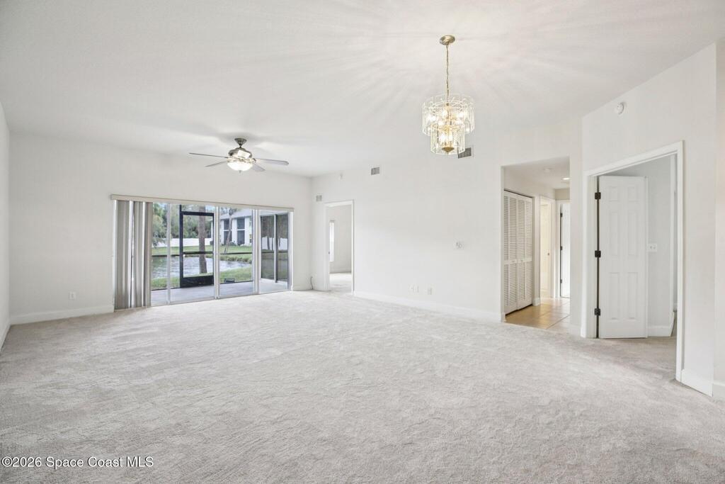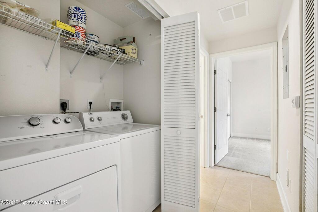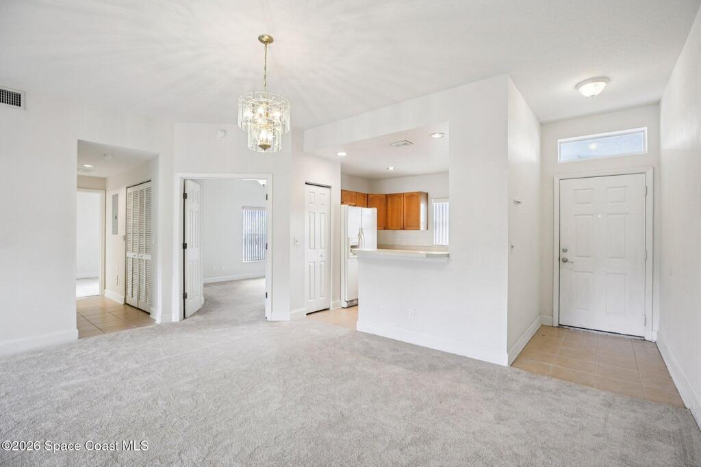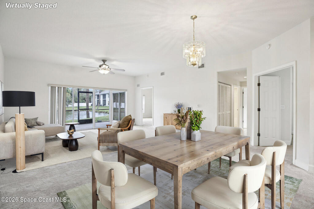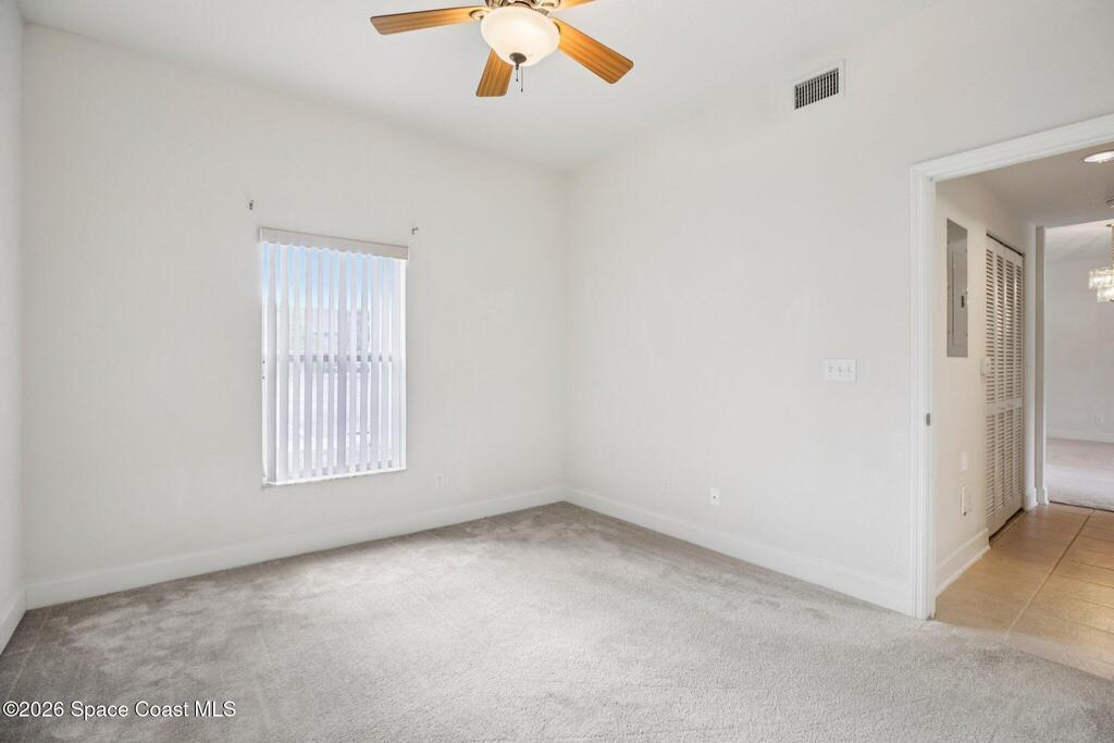 Great opportunity to own a condo in the desirable Portside Villas community in Cape Canaveral. Just a short walk or bike ride to the ocean, this unit is ideally located on the east side of A1A, so there's no need to cross a major highway to enjoy the beach. This well-maintained 2006-built condo features a rarely available 3-bedroom, 2-bath floor plan and is situated on the highly desirable first floor with no stairs. As a corner unit in a two-story building, it offers added privacy and natural light. NEW carpet throughout and an inside laundry area with washer and dryer add to the move-in-ready appeal. Enjoy the coastal breeze from the large screened lanai, which also includes an additional storage closet. The spacious bedrooms provide comfortable living, and the primary suite features two large walk-in closets along with a well-appointed bath offering dual sinks, a soaking tub, and a walk-in shower. The building is well maintained, the A/C was replaced in 2018, and exterior