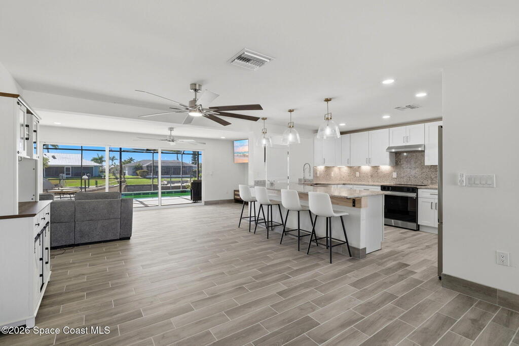 Bring your boat to this stunning riverfront pool home, ideal for full-time living or investment, completely renovated from top to bottom. The open-concept layout features brand-new flooring throughout and a fully redesigned interior with all-new electrical, plumbing, and HVAC systems. The kitchen is completely new with modern cabinetry, new countertops, designer backsplash, and all-new appliances. Every bathroom has been fully renovated with new vanities, fixtures, tile, and finishes, including a reimagined primary bath with a custom walk-in closet that seamlessly connects to the bathroom. Exterior upgrades include new stucco, driveway, pavers, soffits, impact doors and windows, garage door, and fresh paint. The pool has been fully resurfaced with a new deck finish and brand-new pool equipment. Truly turnkey waterfront living with no detail overlooked.