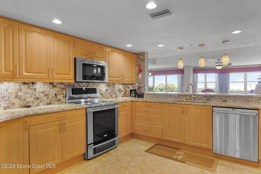 Welcome to coastal living in Daytona Beach Shores at Unit 502D in Oceans Cloverleaf North. This spacious 3-bedroom, 2-bath furnished condominium offers over 2, 100 square feet of light-filled living space with unobstructed Intracoastal Waterway views from the living area, dining space, and primary suite. Located just steps from the beach, this residence is ideal as a full-time home, second residence, or investment opportunity. Enjoy sunset views from the private balcony and an open-concept layout perfect for entertaining. The kitchen features stone countertops, stainless steel appliances, a walk-in pantry, and ample cabinetry. The primary suite offers balcony access and a spa-style bath with dual vanities, soaking tub, and walk-in shower. Additional highlights include in-unit laundry and a dedicated parking space on the same floor. Community amenities include secure entry, indoor and outdoor pools, fitness center, sauna, clubhouse, and private golf course conveniently located.