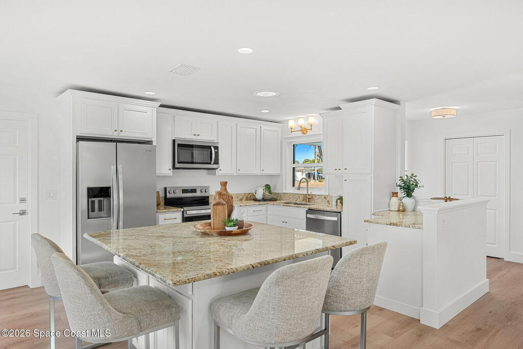 Coastal oasis just three blocks from the beach and minutes from a public park! This beautifully updated home with new paint inside and new paint outside features 4 bedrooms, 2 bathrooms, and two spacious living areas designed around an inviting open-concept layout. Interior highlights include brand-new flooring throughout, a cozy wood-burning fireplace, all-new modern light fixtures, and all-new appliances.Both bathrooms have been fully remodeled with elegant mother-of-pearl tile, creating a refined coastal ambiance. Major upgrades include all-new plumbing connected to city streets, a 2017 roof, 2022 HVAC system, and a 2023 water heater, offering peace of mind for years to come. Step outside to enjoy a fully fenced-in yard, perfect for pets, play, or private outdoor entertaining.The finished two-car garage boasts epoxy flooring and custom built-in cabinetry, offering exceptional storage and functionality. Move-in ready and perfectly positioned for relaxed beachside living.